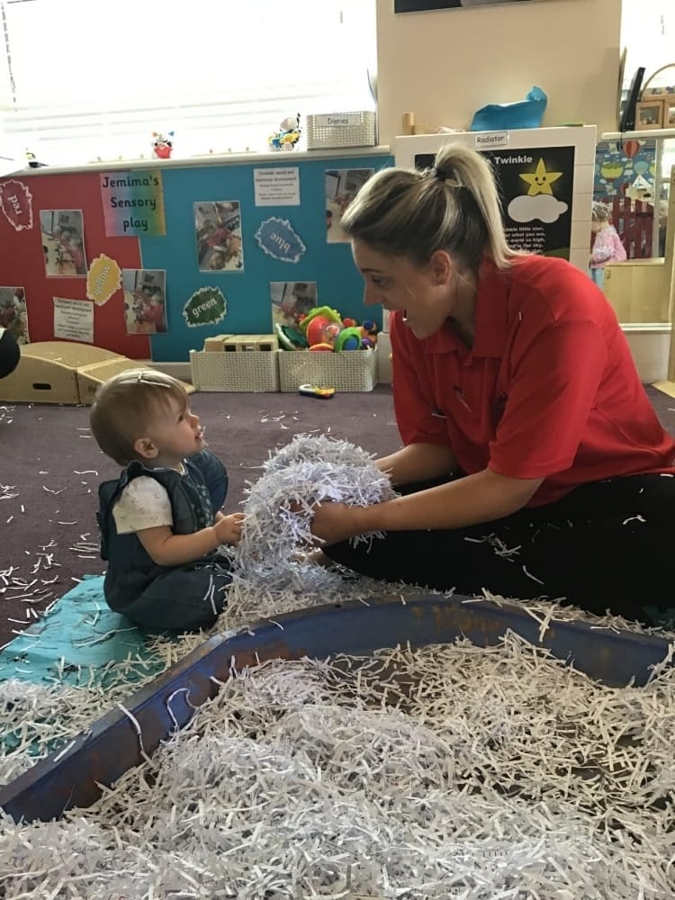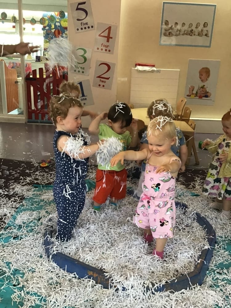 The faces say it all in these images from Meir Park! We had so many smiles and giggles from the Jemima Puddleducks and Bobtails as they delighted in playing with shredded paper on a large scale. They loved throwing the tangled mess of paper up into the air and watching it fall, touching their little faces, hands and feet as it did so!
