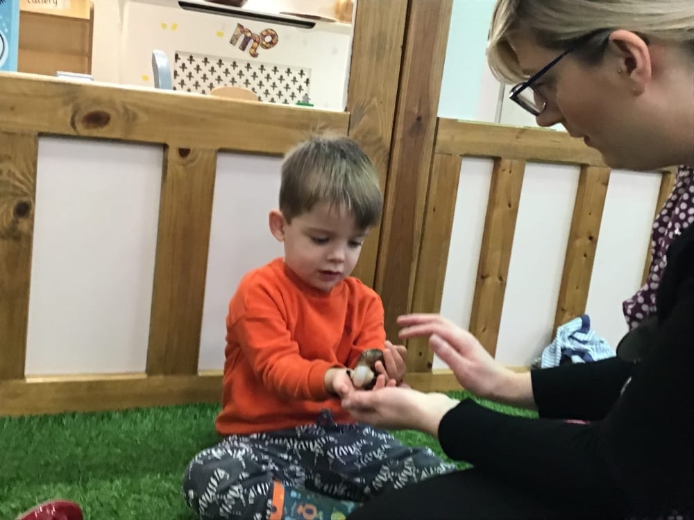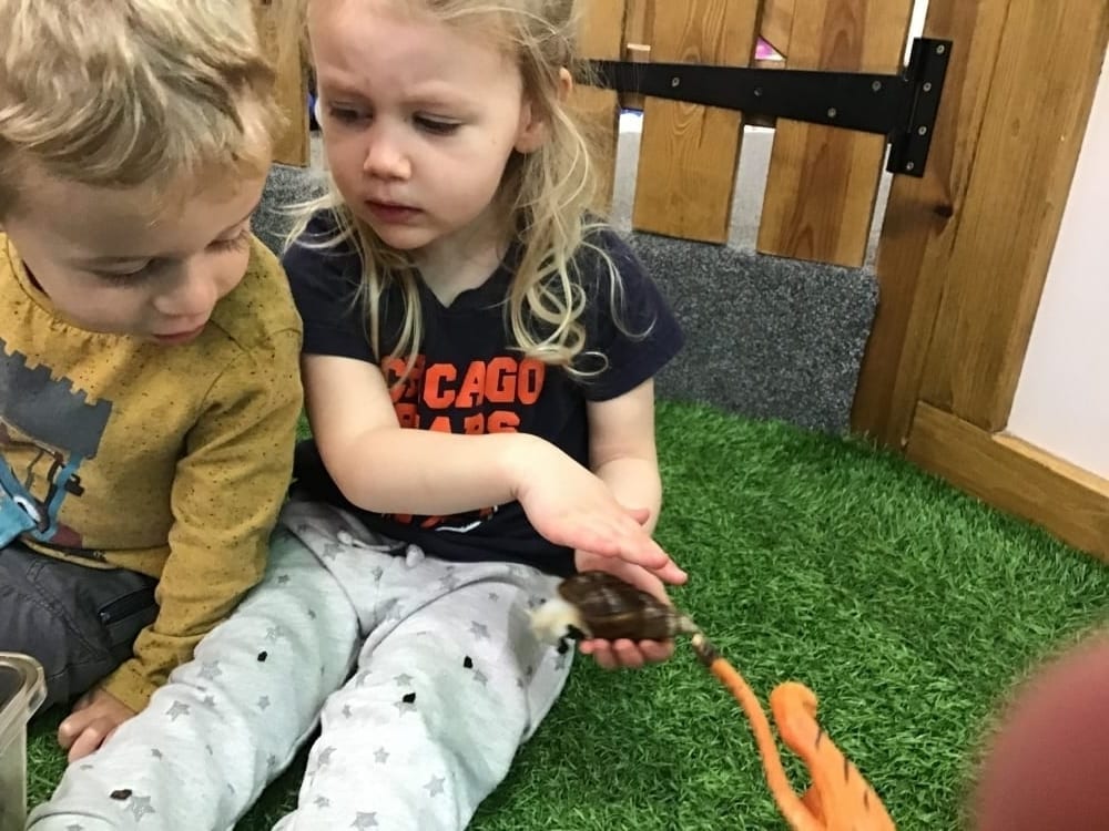 Mr Josh from Children 1st @ Grantham kindly brought along these giant snails for us to have a look at. The Peter Rabbits have enjoyed observing them and touching their shells to see what they felt like. James said, “Wow! It’s so cold!”