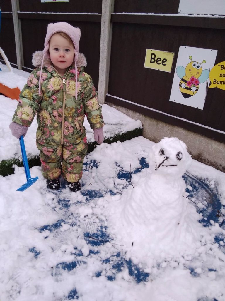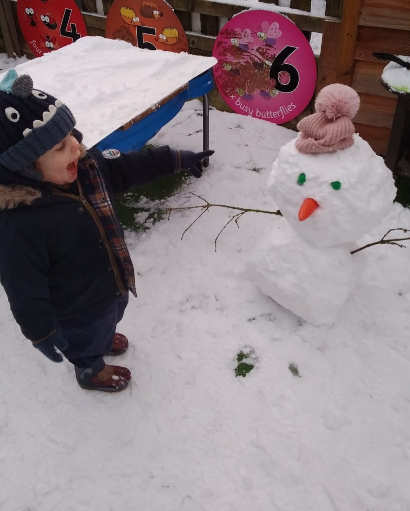 The children at Buckinghams were very excited to see the snow covering the play areas and gardens. For the babies it’s their first experience of snow and they showed lots of curiosity when noticing their footprints. The older children worked together to make snowman ‘Bill.’ They learned about their body parts whilst building the snowman and enjoyed role playing ‘Frozen,’ pretending to be Elsa and building Olaf.