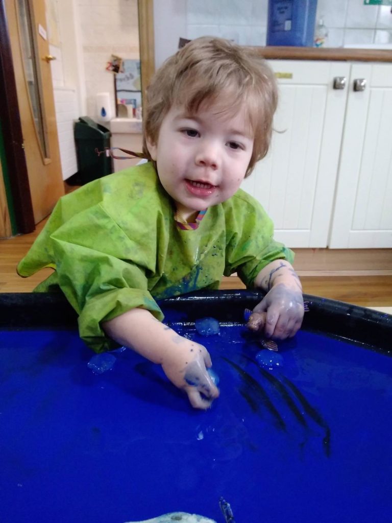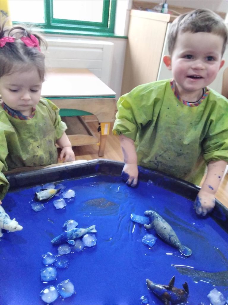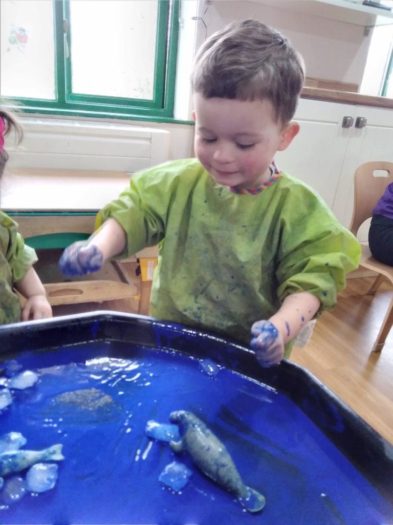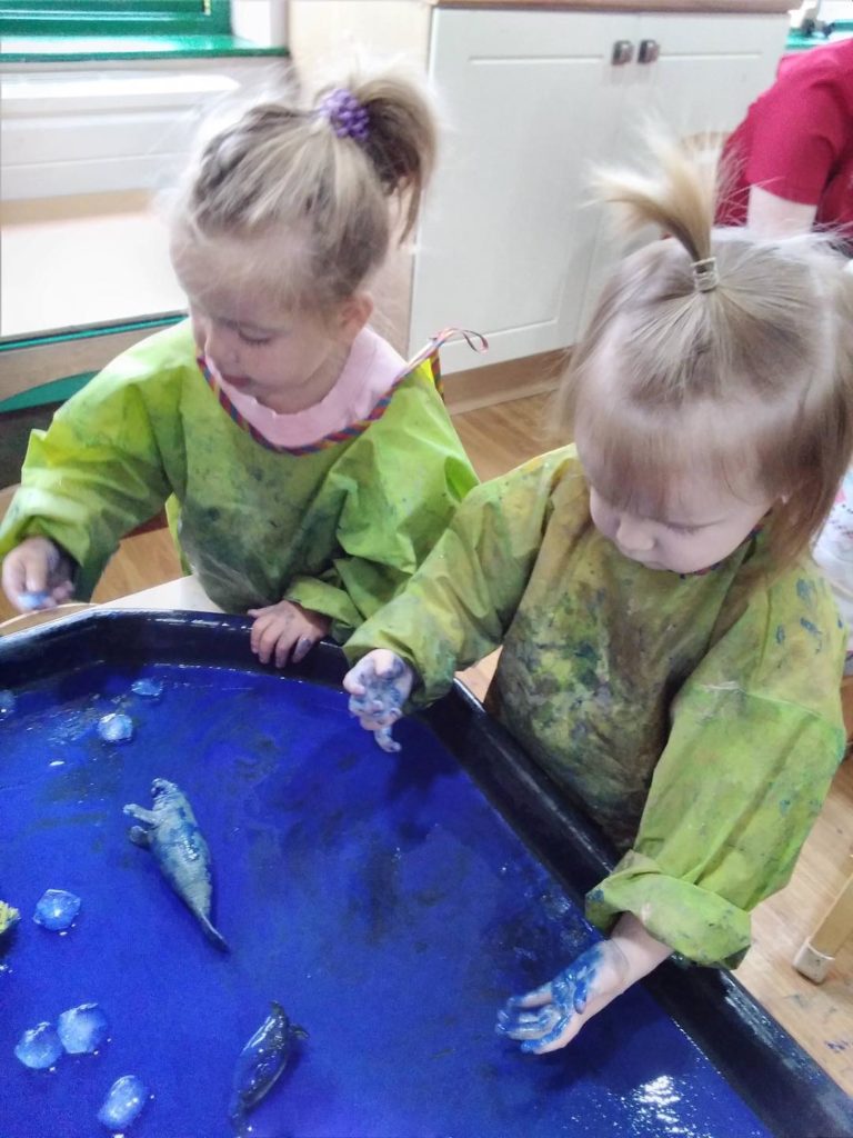 The Peter Rabbits have been learning about their senses, using touch and sight as they played with the ice and the arctic animals. This experience enabled them to learn new words such as ice, arctic and cold.