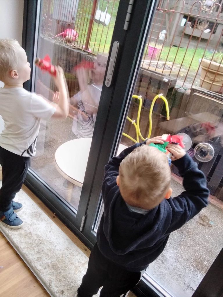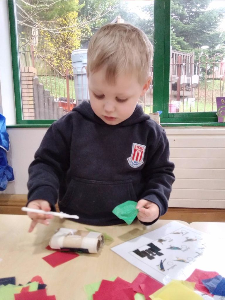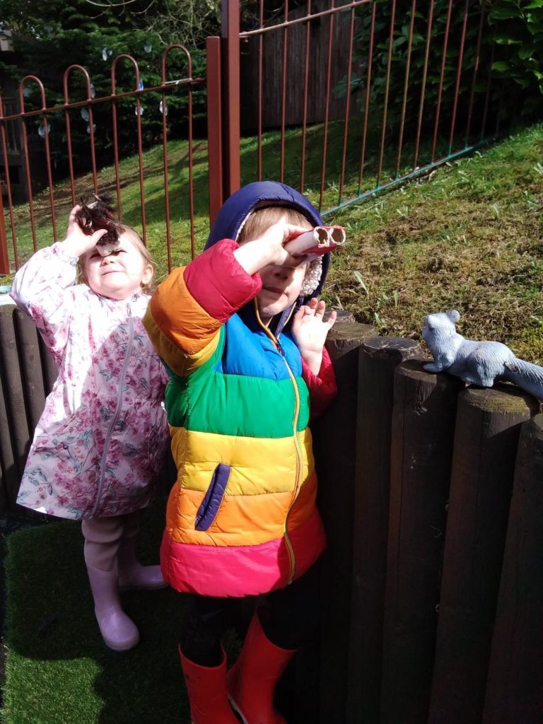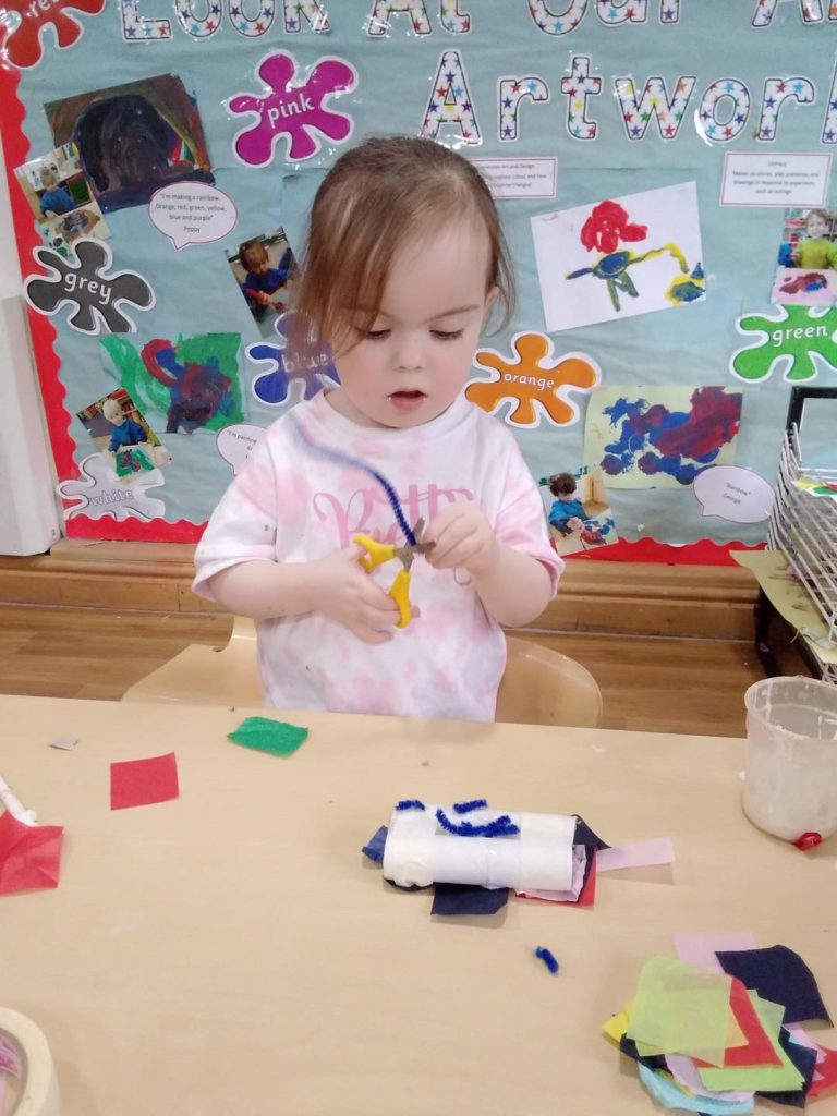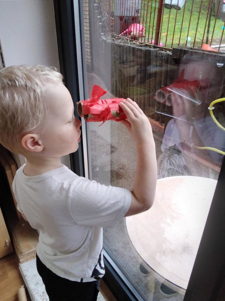 The Early Years have been using their making skills to create binoculars using a range of junk. They discussed the different materials they were using and showed great curiosity when sticking down the textured feathers. After making their binoculars they then tried them out, looking through the window to see if they could spot any birds. They then ventured outside and explored the garden, looking up at the sky, trees, and our beautiful environment!