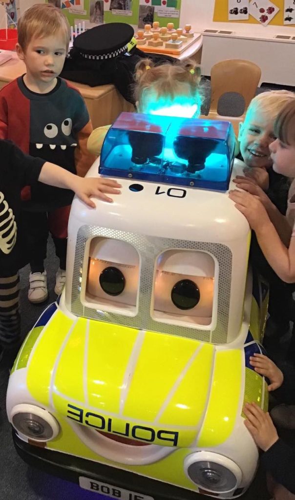 The Police very kindly came to talk to the children about their role in our community and how they help to keep us safe. They brought in an extra special guest, Bobby the Police car! Bobby was a hit with the children especially as he flashed his lights and sounded his siren. They loved trying on the Police Officers’ hats!
