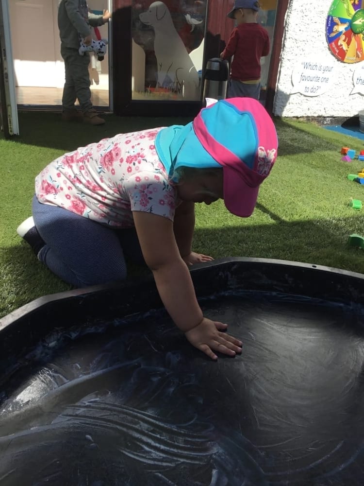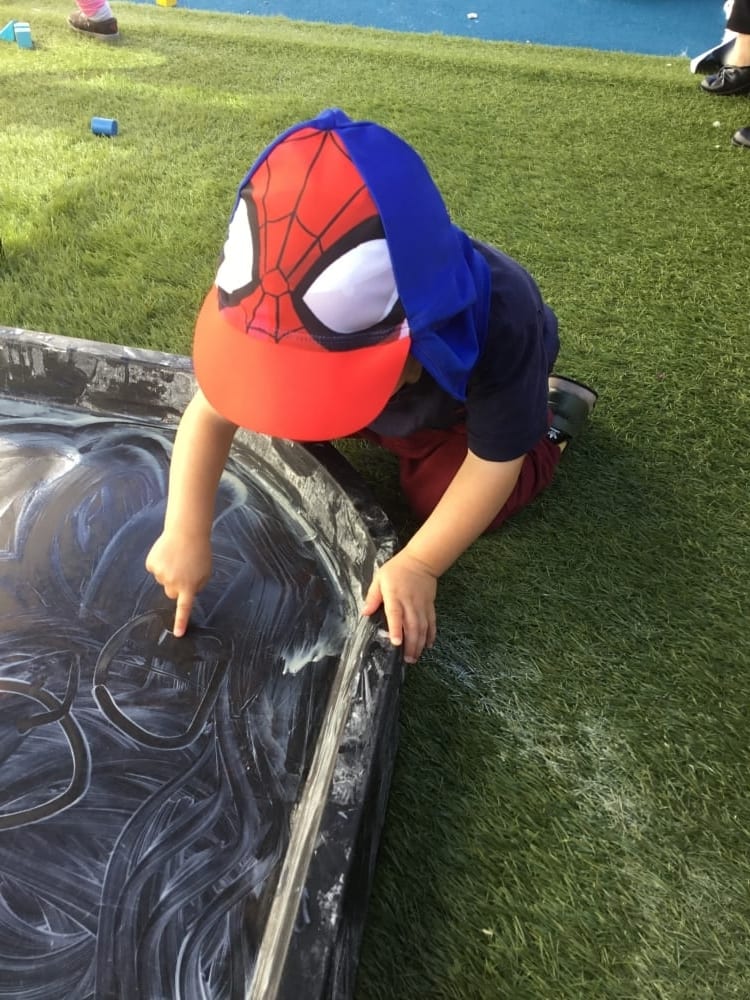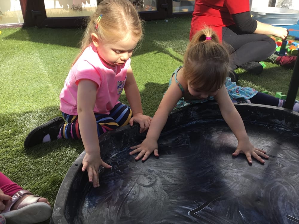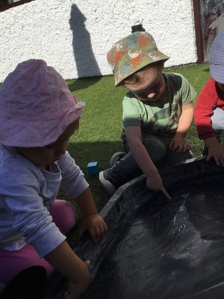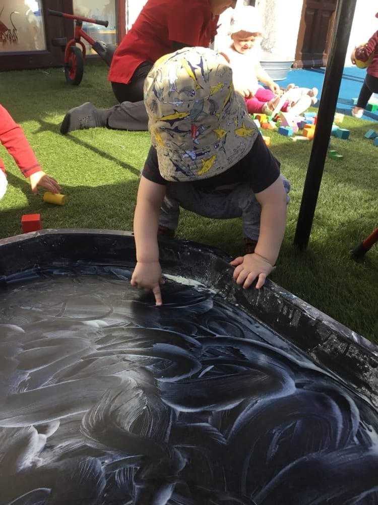 The Benjamin Bunnies and Peter Rabbits have been exploring the different ways we can make marks so we decided to add a soapy water tray to our outdoor activities. This was a simple but effective way of helping them to develop their mark making skills in a fun way.