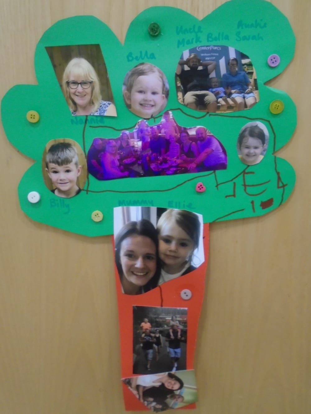 The hit activity of our sessions was definitely the opportunity to make a family tree poster. All our special people and the children brought photos in from home showing family members. They used the images and their own ideas to create their family tree. There was so much chatting, cutting and sticking going on as everyone really engaged with the task! It was great to hear the children talking about themselves and to see how eager they were to share their family trees.