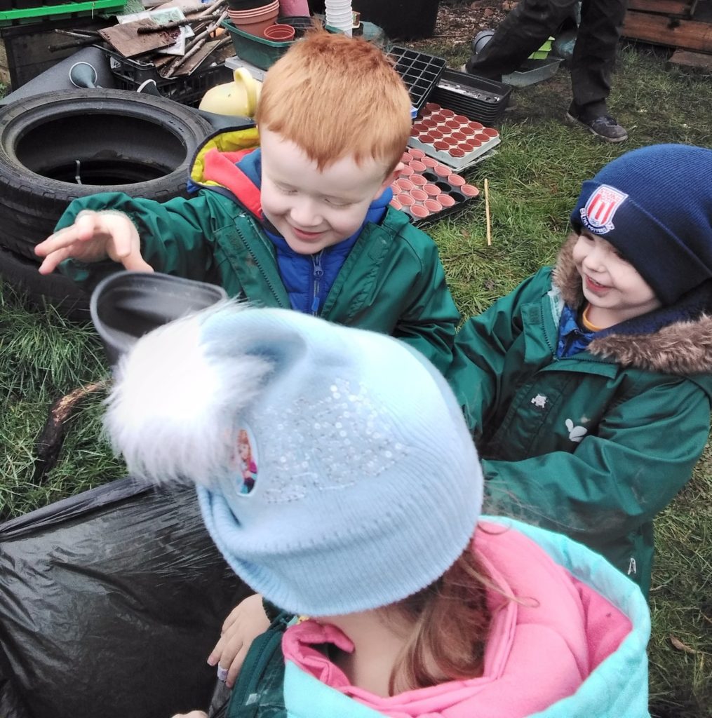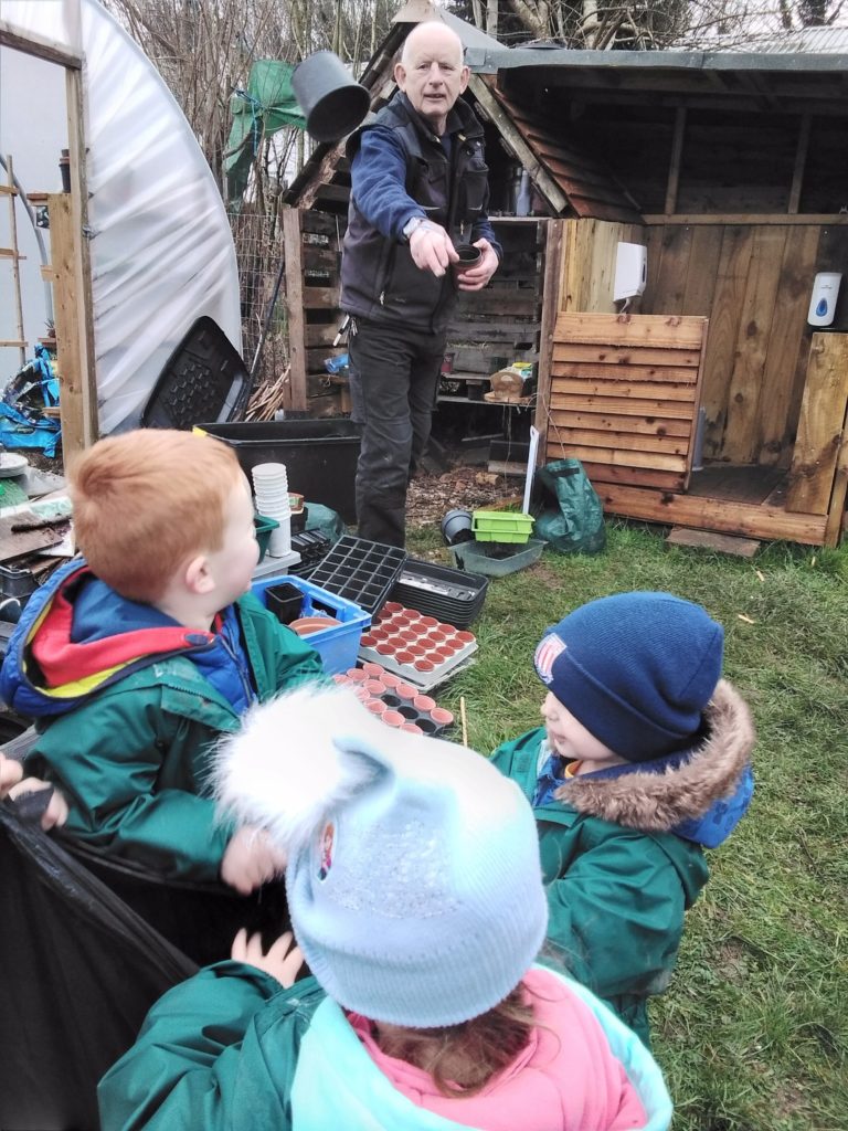 The children have been working hard in the barn sorting out the poly-tunnel and all the pots and equipment that we have down in the allotment ready for Spring and Summer work in the garden. They helped Mr Peter to sort through all the old pots getting rid of any squashed and broken ones.