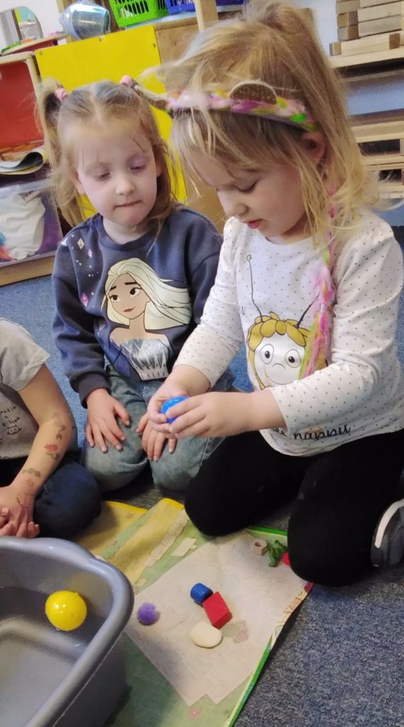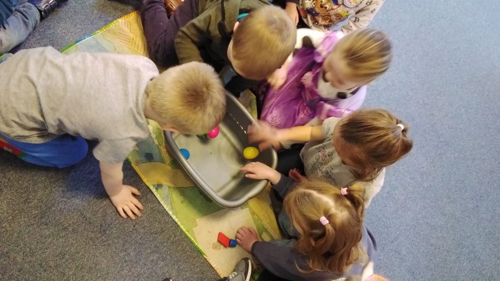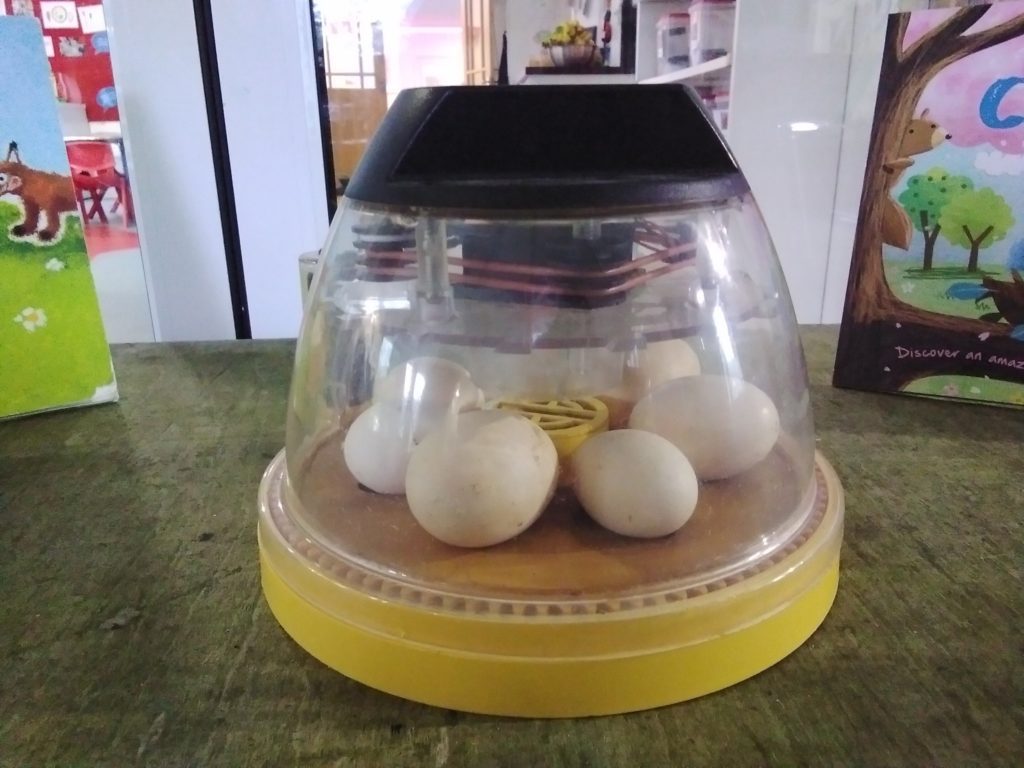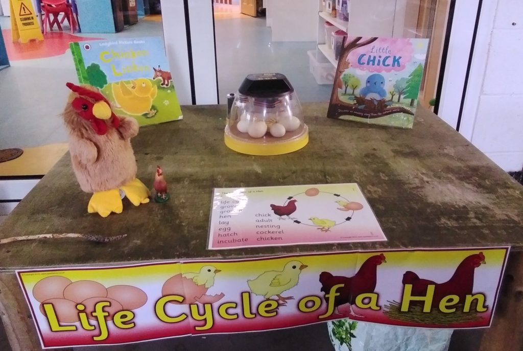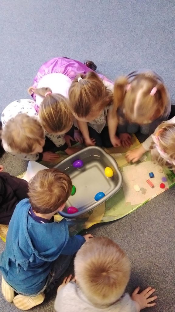 Following on from an exciting activity using plastic eggs which had the children predicting whether items in the eggs would float or sink, they were so excited by the arrival of seven chicken eggs and their incubator. The eggs will stay in the incubator with a humid heat for 21 days and during this time the incubator will rotate and turn the eggs like a mother hen. The children can’t wait to see what happens! The egg countdown has begun!