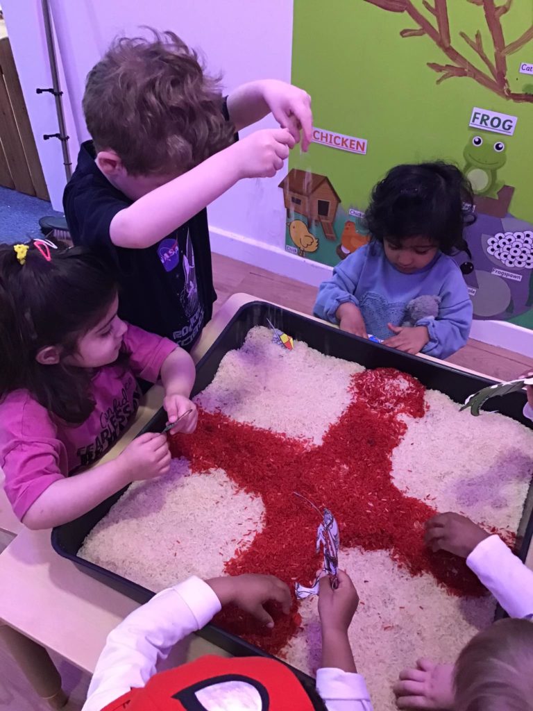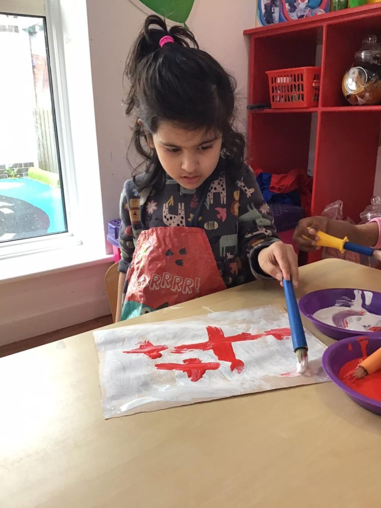 Early Years painted their own St. George’s crosses using the paint and brushes.