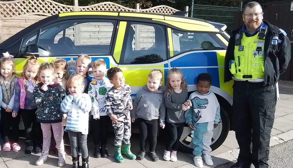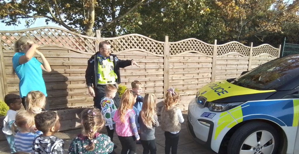 Thank-you so much to PCSO Patrick for giving his time to talk to the children about the important topic of stranger danger and for letting the children give his Police car such a close inspection!