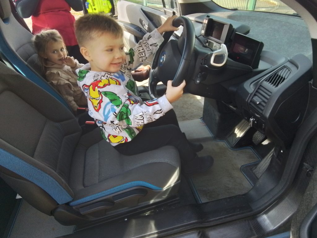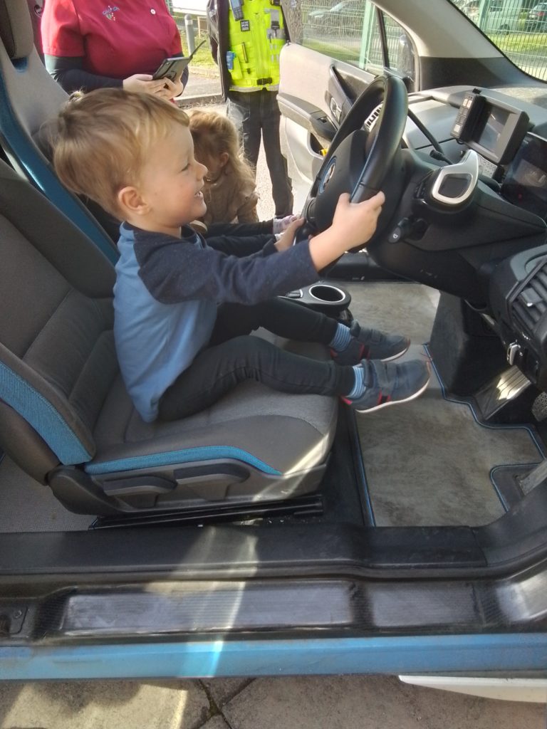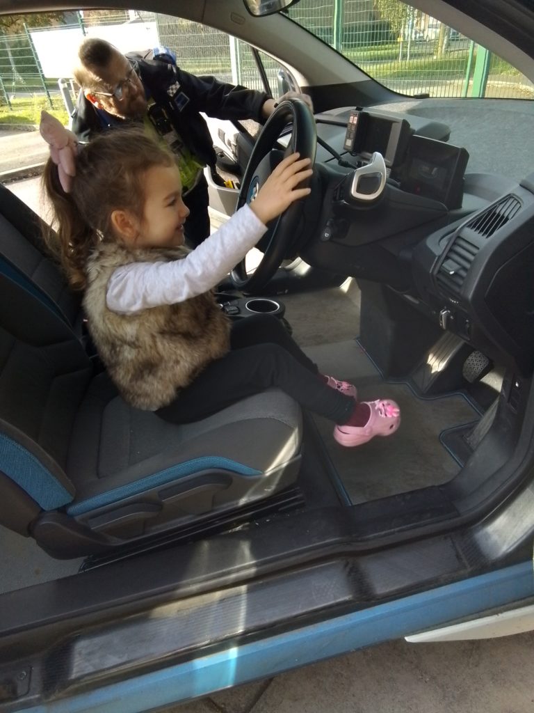 After the discussion, Patrick showed the children his splendid Police car. The children were all so excited to have a turn at sitting in the driver’s seat. They learned how to turn on the lights, and about what is carried in the boot of the car. He went on to explain what the contents of the boot could be used for, such as traffic cones being used to close off a road. Some of the children were really interested in the details of the car like the Police badge.