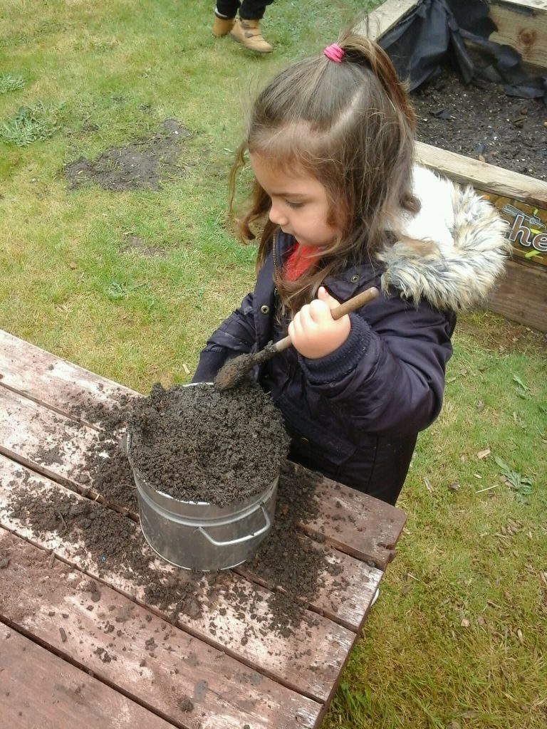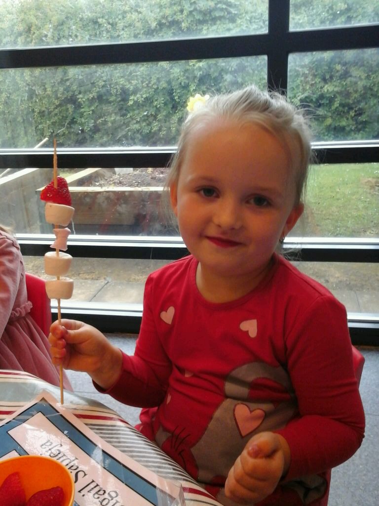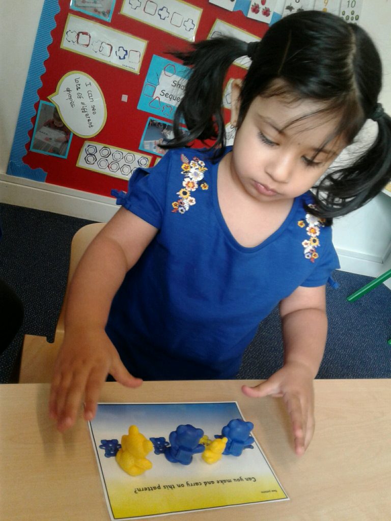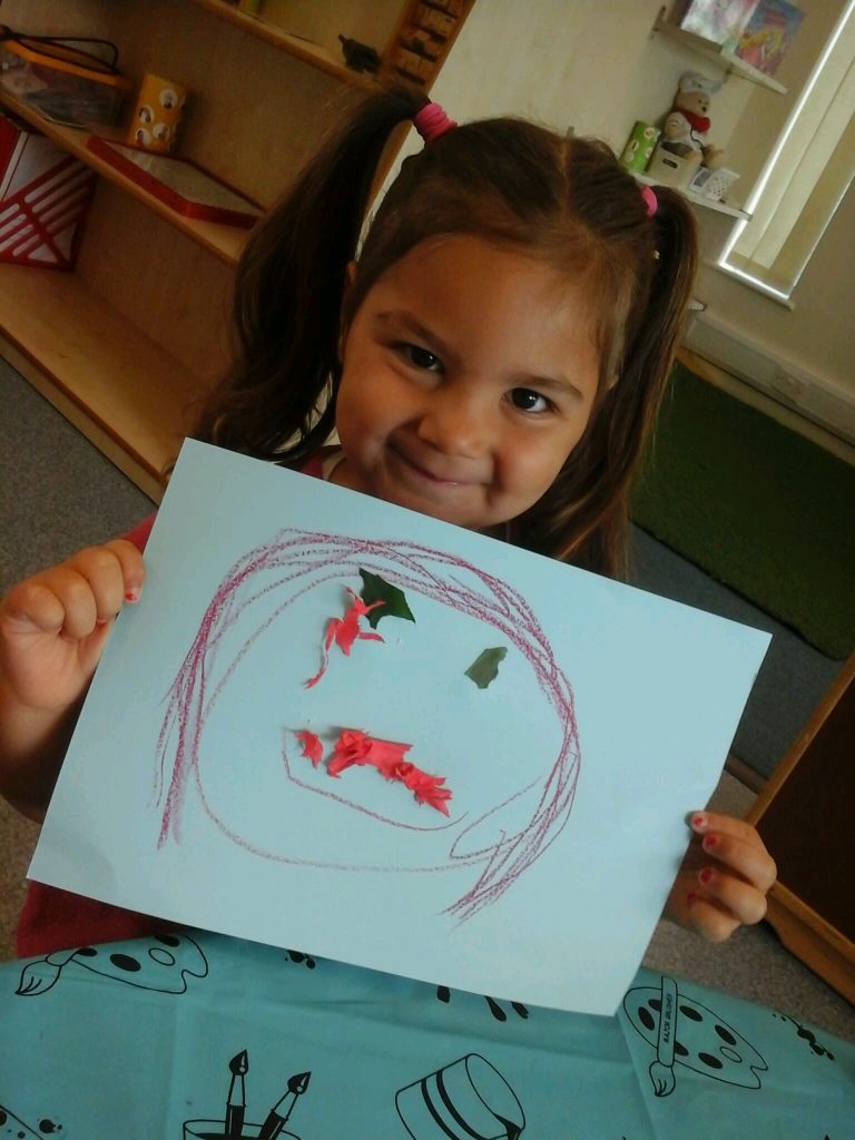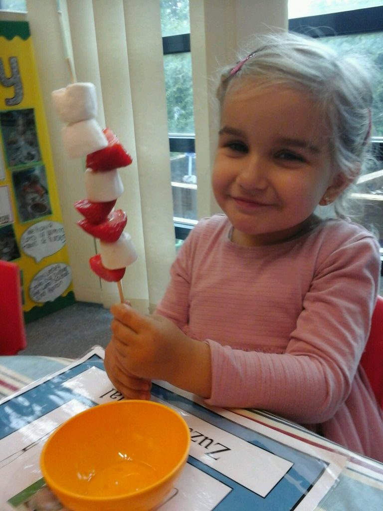 We have made fruit kebabs and loved getting messy in the mud kitchen! We have been super clever making patterns with the compare bears and been creative in the woodwork area. We’ve been learning how to write letters from our names and studied ourselves so we could make self-portraits.