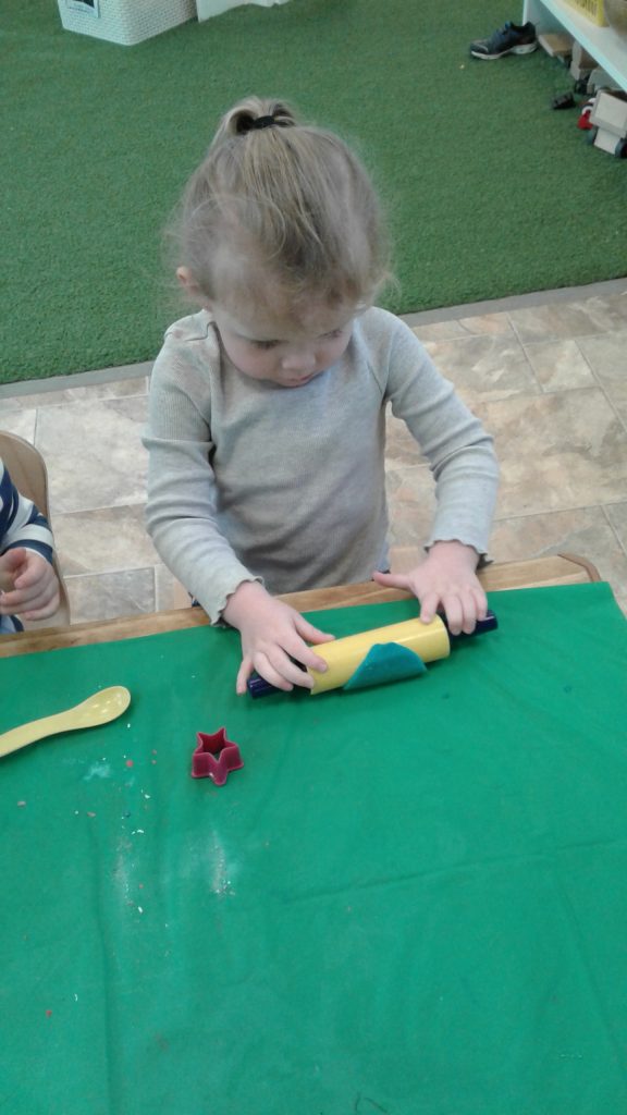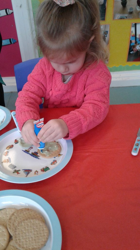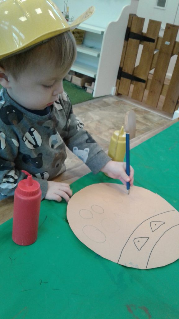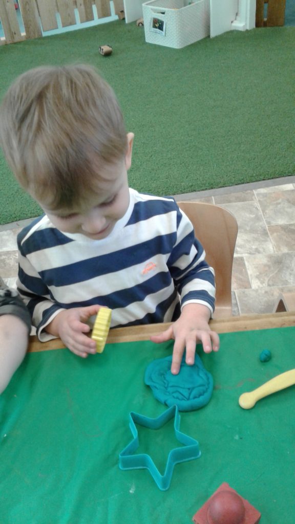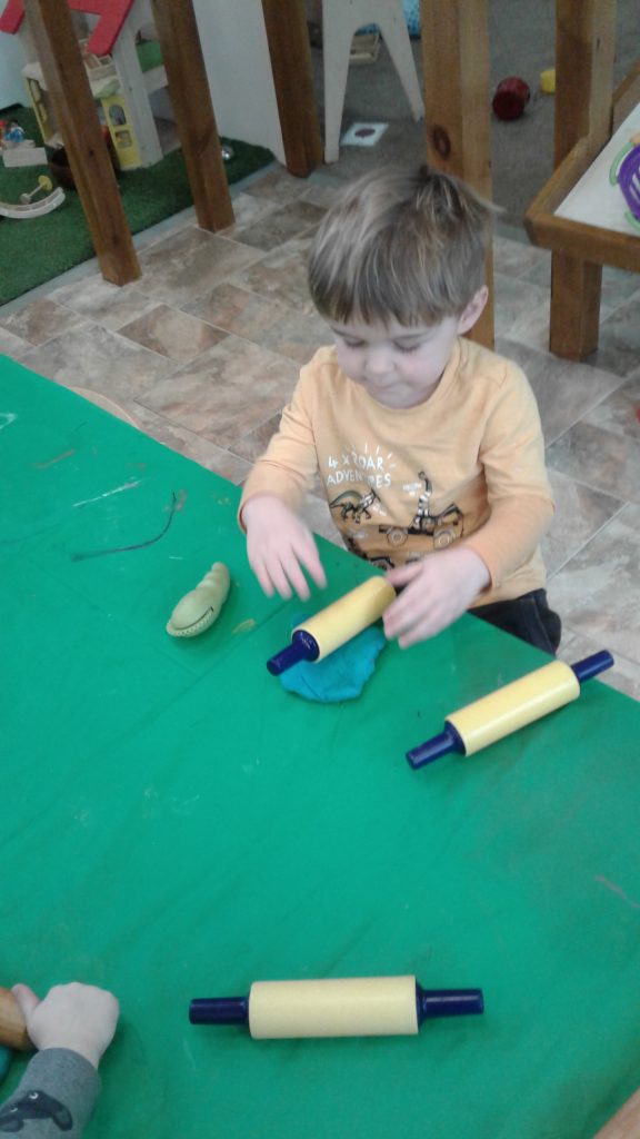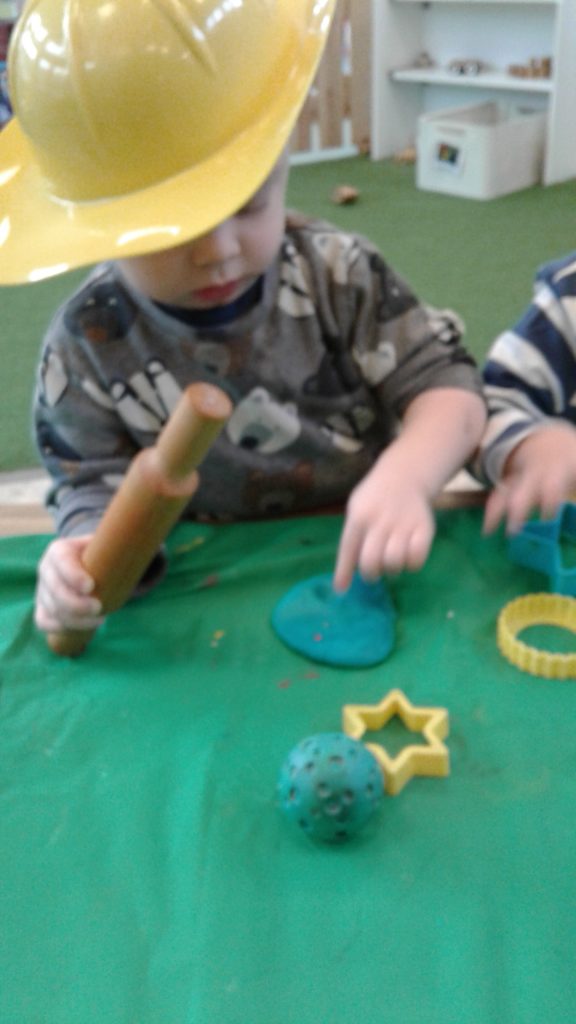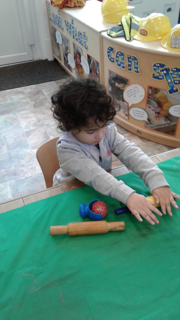Another group had lots of fun using all of our different resources to try and make ‘The Evil Pea’ out of green playdough, and using buttons for his eyes.