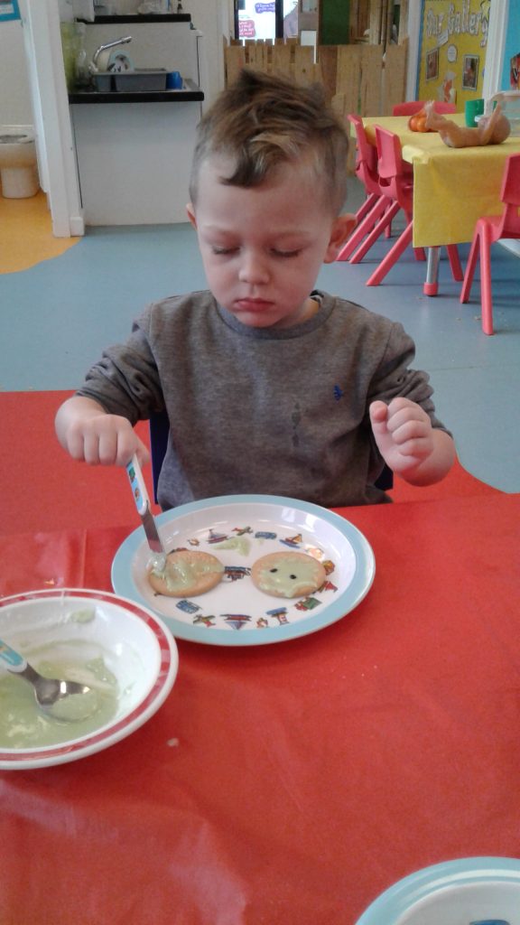 Lastly the children were spoilt by being able to use green icing and icing pens to once again try and make their very own ‘Evil Pea’ biscuit! Great work everyone!