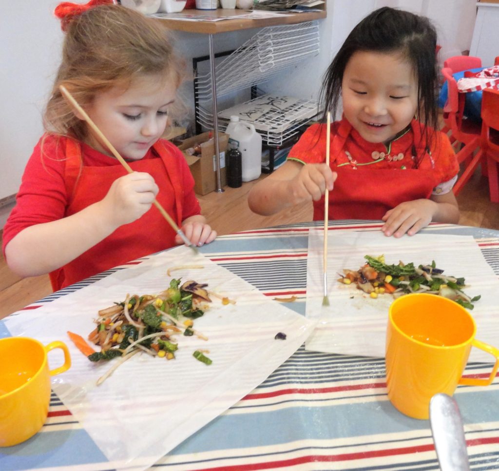 The children were great at following written instructions to make their very own spring rolls and even created their own decorations by adding coloured tissue paper to paper lanterns.