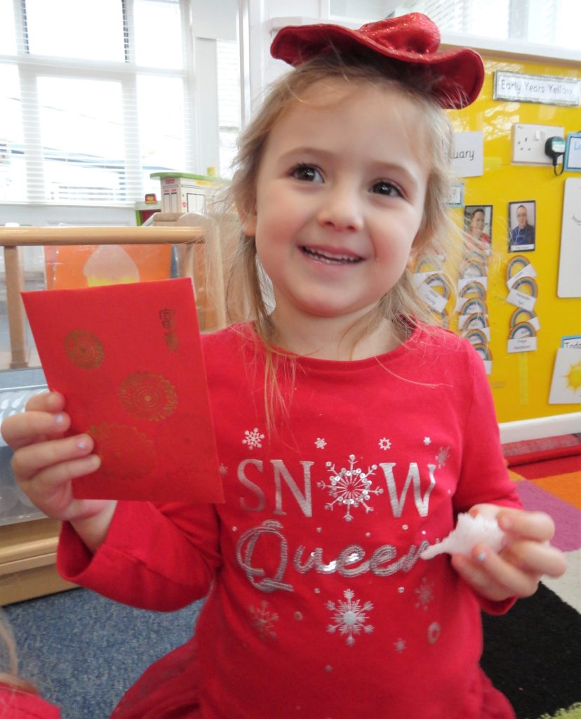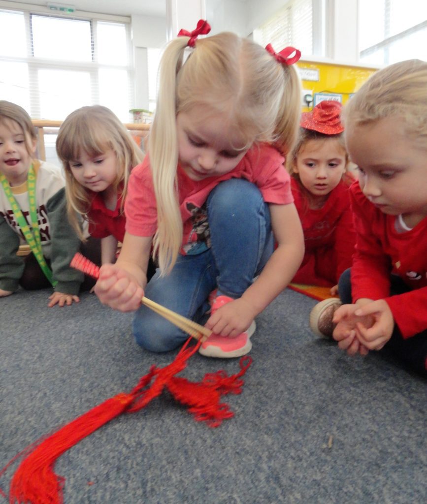 Miss Tina showed the children lots of different traditional decorations and items including videos of traditional lion and dragon dances, as well as giving the children lots of information about what happens during the New Year celebrations.
