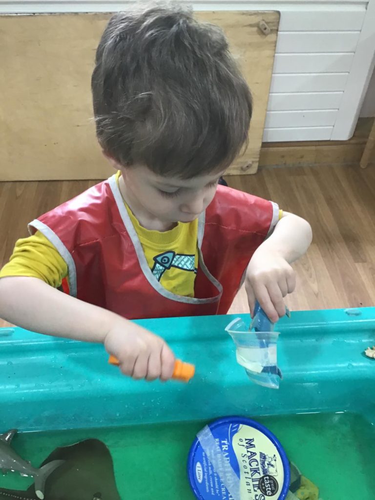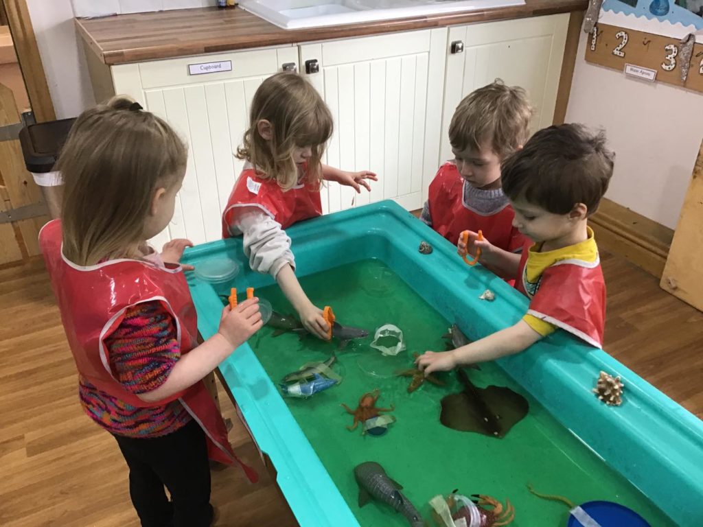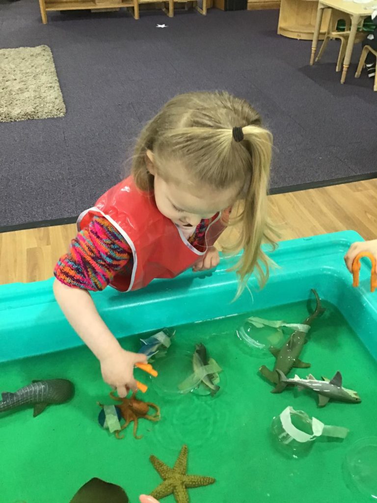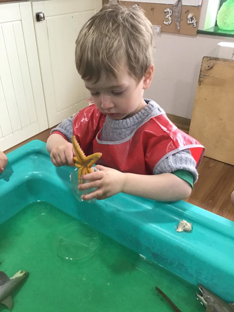 Elsewhere in nursery the children have been enjoying activities inspired by ‘The Rainbow Fish’ by Marcus Pfiser as part of their sea themed week. Using the theme as an opportunity to teach the children about the harm caused to marine life by rubbish in the sea, they were tasked with freeing creatures caught up in plastic and then clearing their ‘ocean’ of the rubbish.
