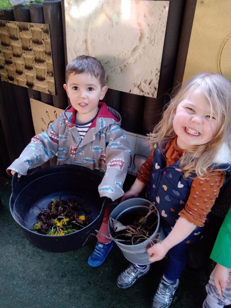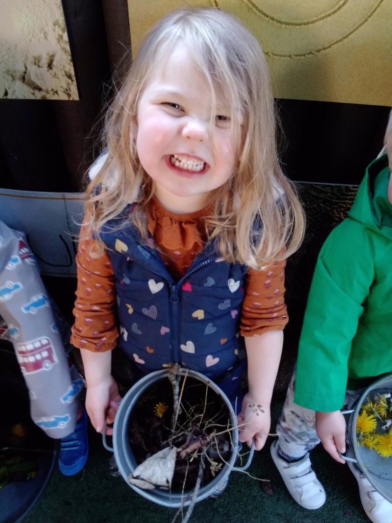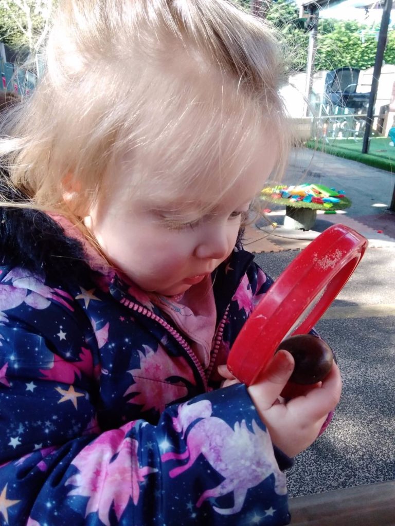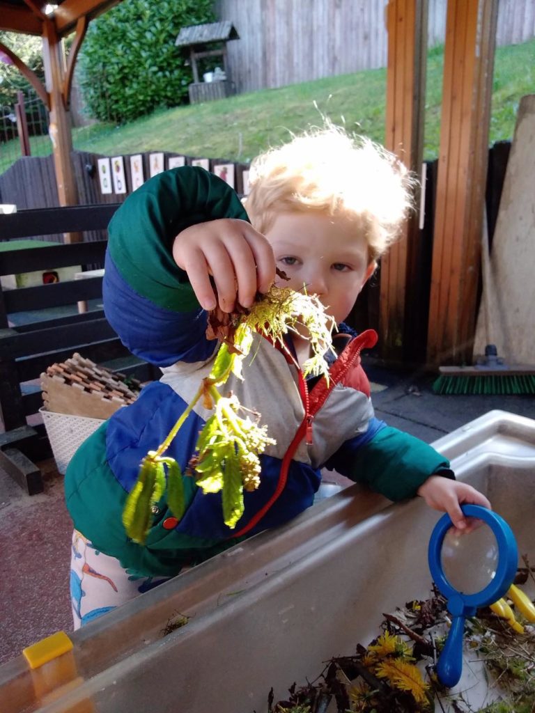 In addition to all that brushing, the Peter Rabbits have been out and about searching for natural objects. Their searches took them around the garden where they gathered a collection of twigs, leaves, flowers and grass which they placed in the sand tray for close inspection using their magnifying lenses. They wondered at the patterns made by mother nature and were delighted when tiny bugs crept out. These were safely returned to the garden.