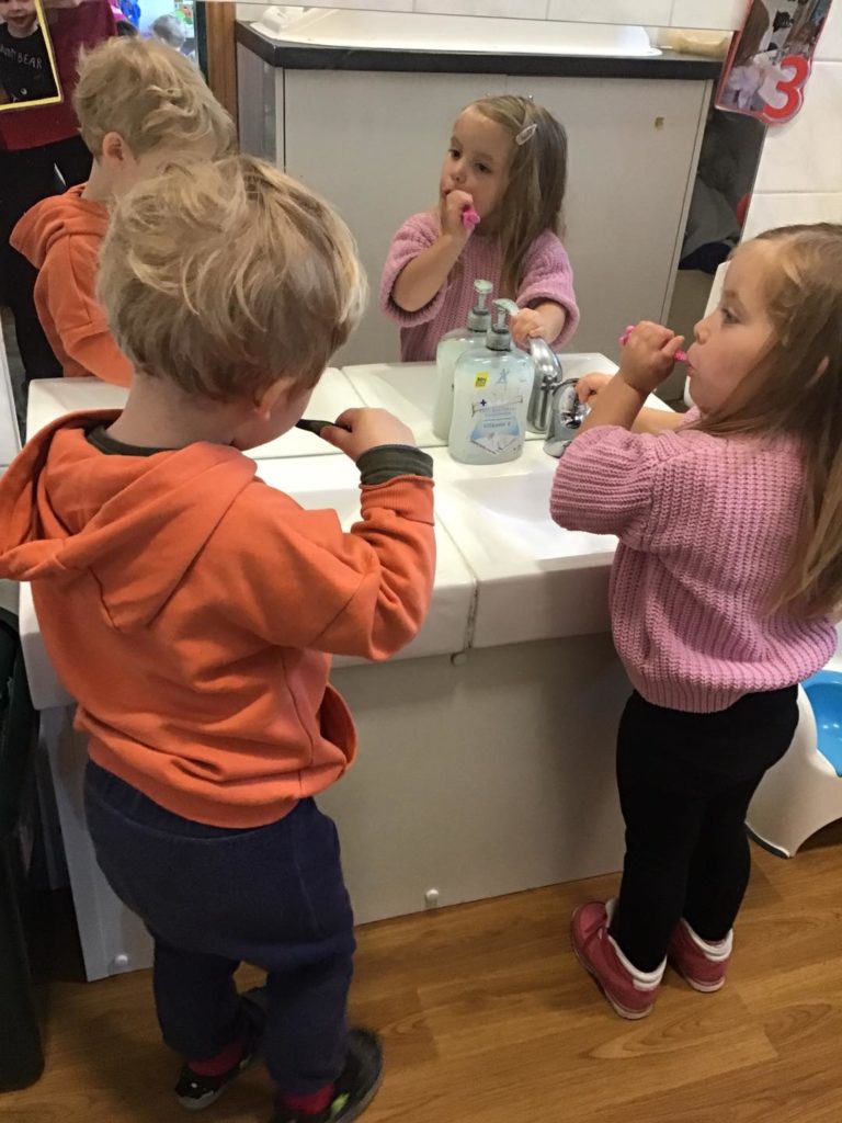 Wow! The Peter Rabbits have been focusing on oral hygiene and what a good job they are doing to ensure their teeth sparkle. As well as learning about why oral hygiene is important and the correct way to brush, they’ve been getting in some extra practice by brushing their teeth at nursery. This is proving to be a very popular activity with the Peter Rabbits. Keep up the good work!