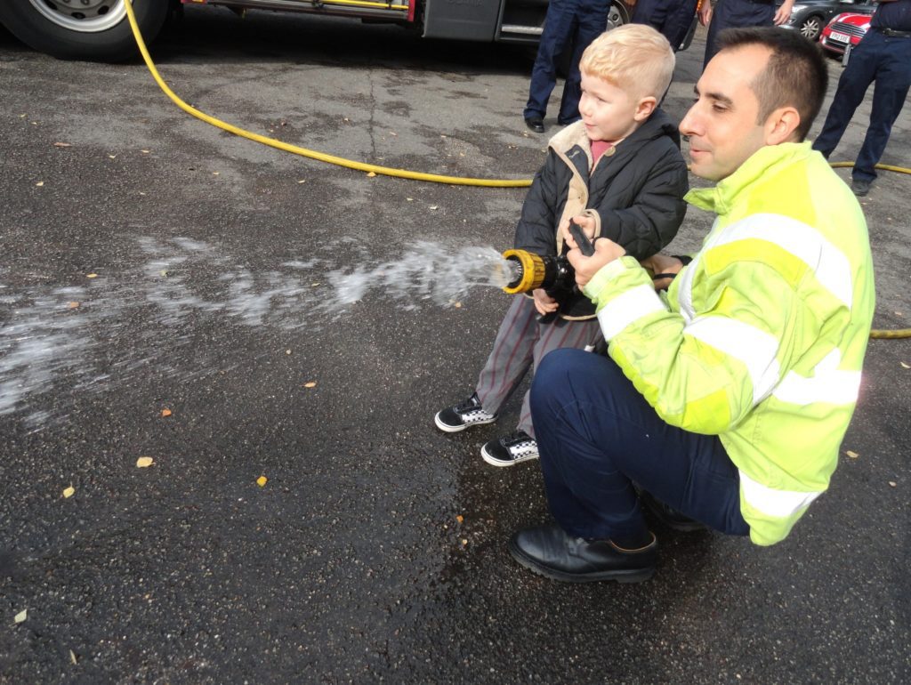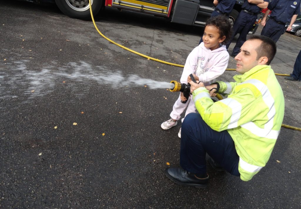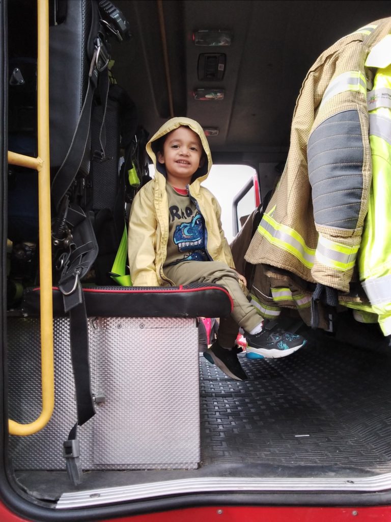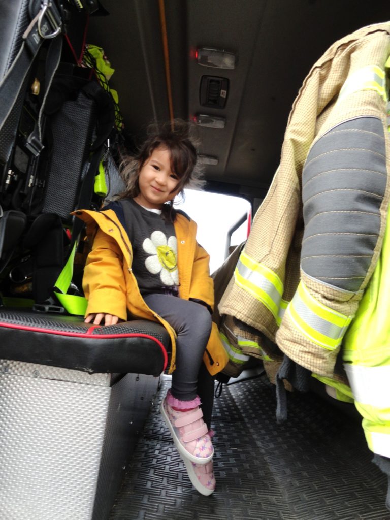 They really enjoyed sitting up high in the cab of the fire engine, seeing the flashing lights, hearing the sirens, and especially loved using the hose to squirt the water!