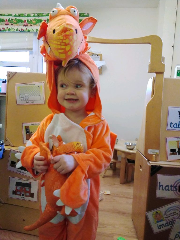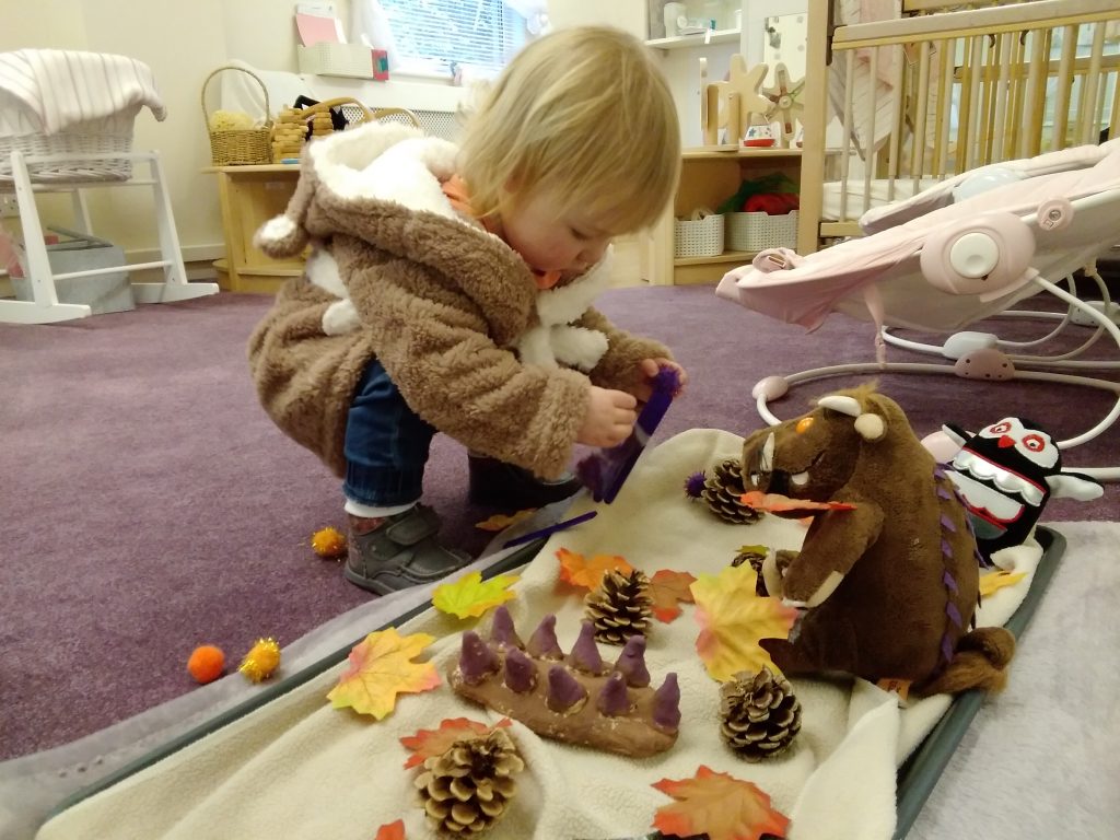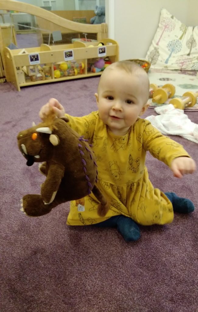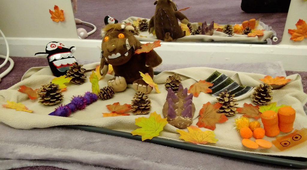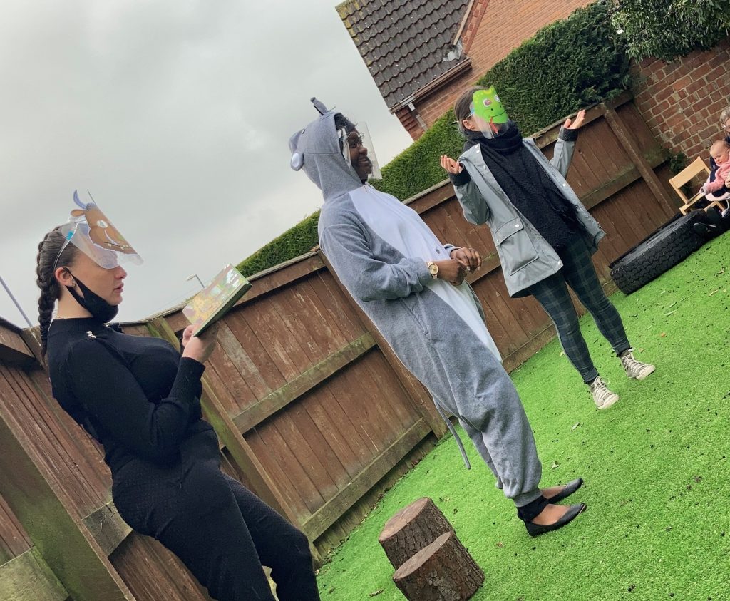 The staff team had a little treat for the children. In our bubbles we sat in the garden together whilst the staff acted out one of the children’s favourite stories – Julia Donaldson’s Gruffalo! It was true Panto style with lots of joining in from the children and we even had Miss Jacqui setting the scene with the music on the guitar!