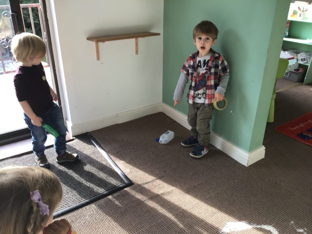 This was a great activity which enabled the children to practise their turn taking skills, and to make marks with meaning on their clipboards where they wrote their incident reports. Of course, in their search for the culprit they were using language to match the clues to people so footprints were either too long or too short and so on. The task of finding the culprit gave a real purpose to the children’s learning. We hope you enjoy looking through the photographs of our investigation.