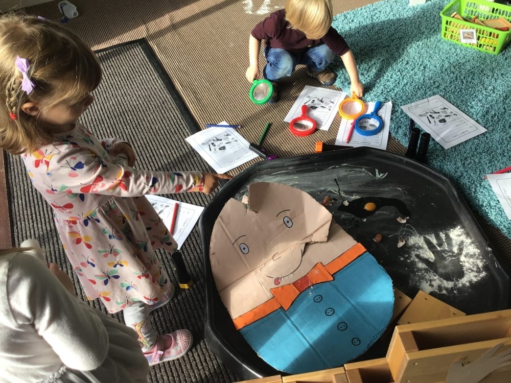 As part of our ‘People Who help Us Topic’ we have been exploring the role of the Police in helping our community to be a good place to live and in detecting crimes. What better way to understand this than by investigating an incident involving Humpty Dumpty.