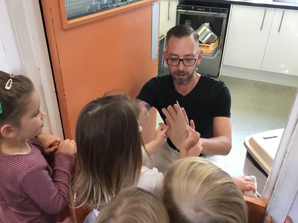 Putting all the evidence together led the children to identify Mr Dan as the culprit who had accidentally knocked Humpty off his wall. “That’s Mr Dan’s from his kitchen,” said Raif.