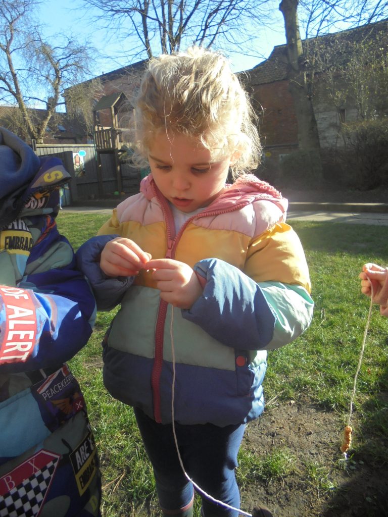 To attract more birds, we added a bird house to the tree and the children were wondering how we could encourage the birds to the tree.  They decided that we needed some food to attract them and so spent the rest of the morning making bird feeders to hang in the tree. We are now eagerly anticipating the arrival of a bird to lay an egg, fingers crossed! We will keep you posted.