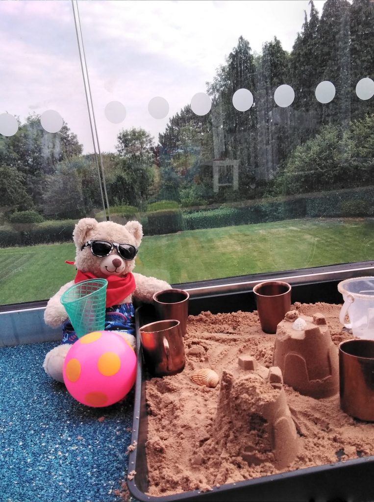Firstly, they visited the beach and explored the sand and water alongside Harvey Bear.