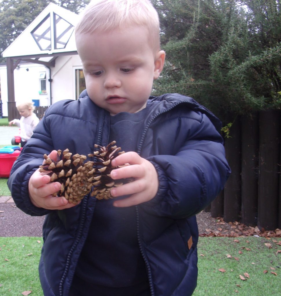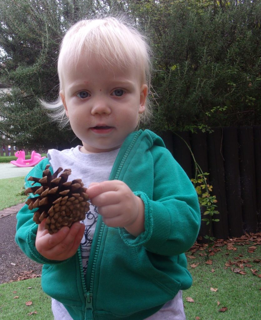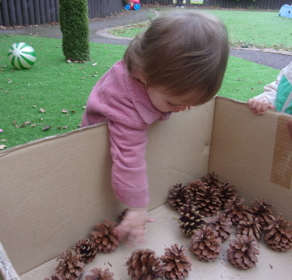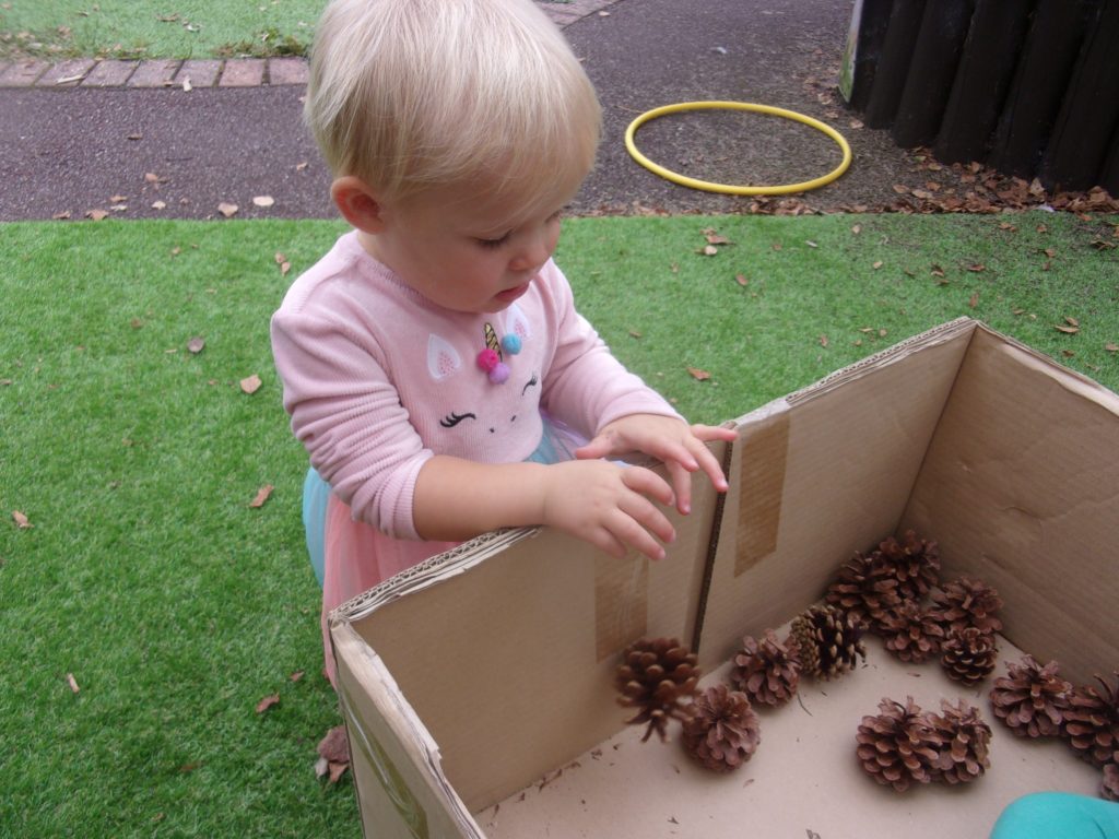 Bobtails were busy discovering what autumn had brought to the garden. They were out and about finding a large number of pine cones which had drifted down from the trees. They found the texture of the cones very interesting as they gathered them up and placed them in our collecting box. Sitting in the box with the cones was great fun too!