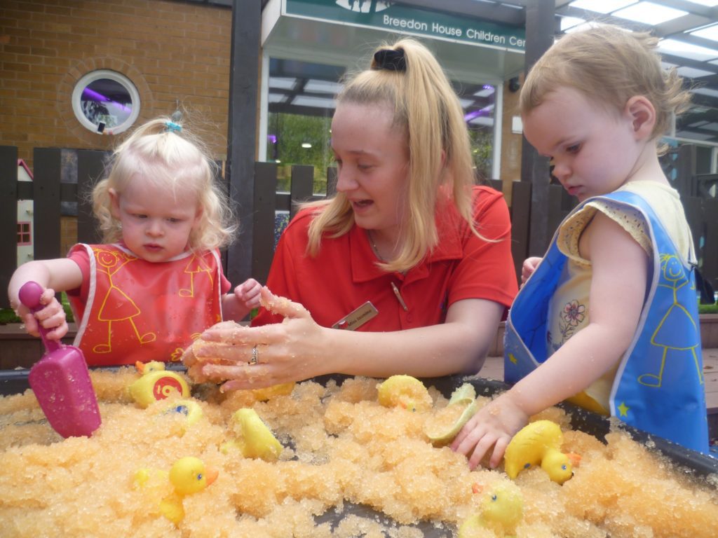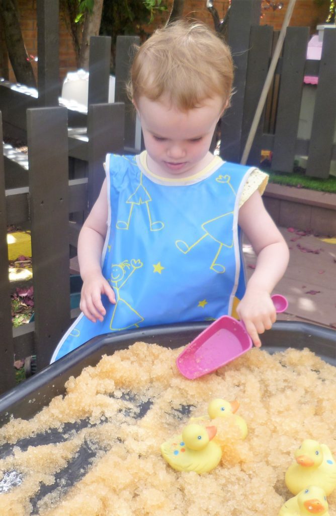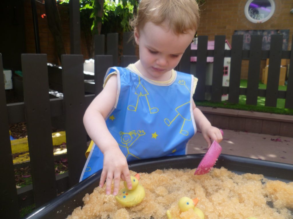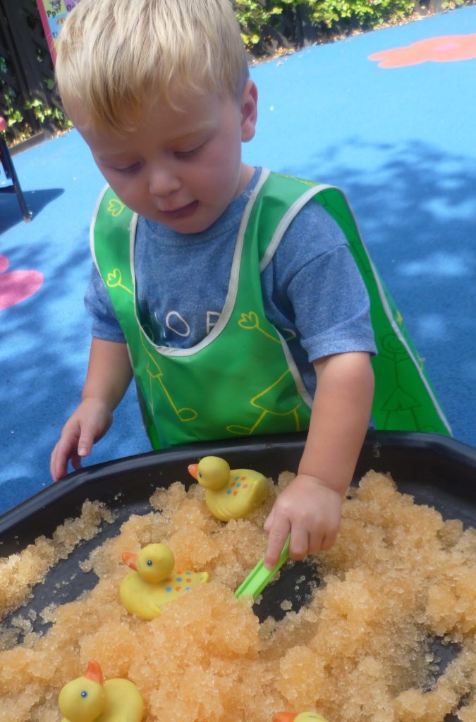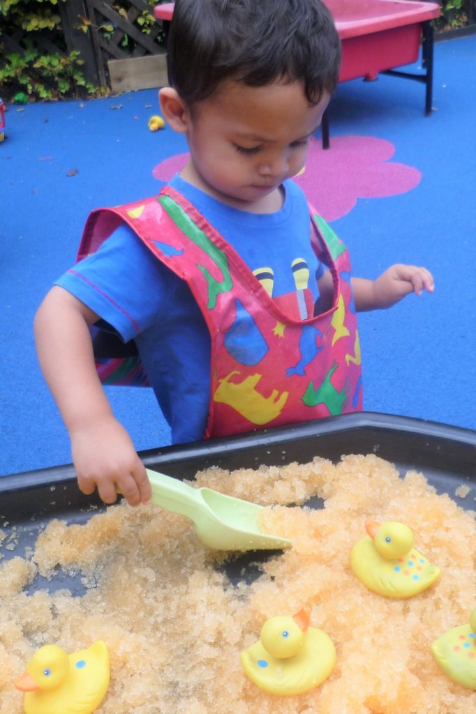 The Benjamin Bunnies delighted in the sensory experience of discovering the yellow ducks in the cold mushy yellow ice.