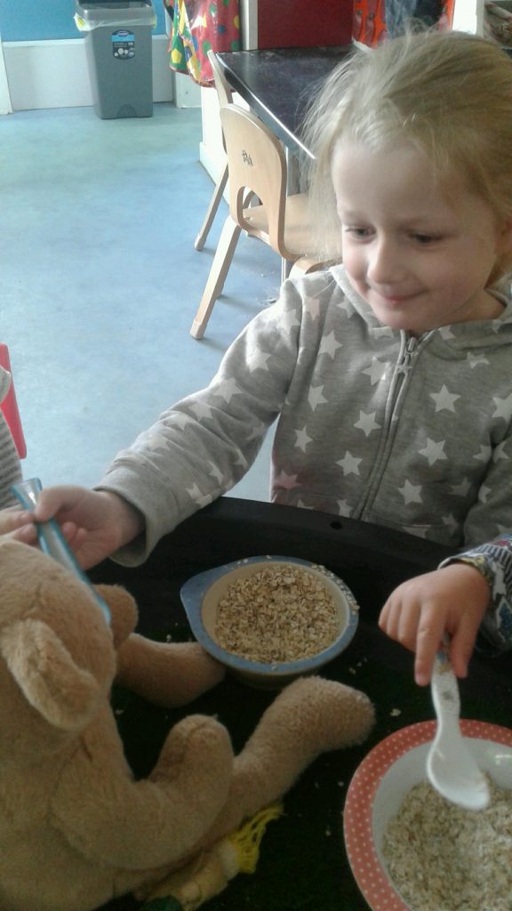 We had fun in our themed tuff spot where everyone enjoyed exploring the porridge oats.