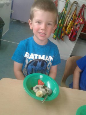 We made some delicious porridge and added a choice of strawberries, blueberries, bananas and golden syrup. Goldilocks would have loved our porridge! We certainly did!