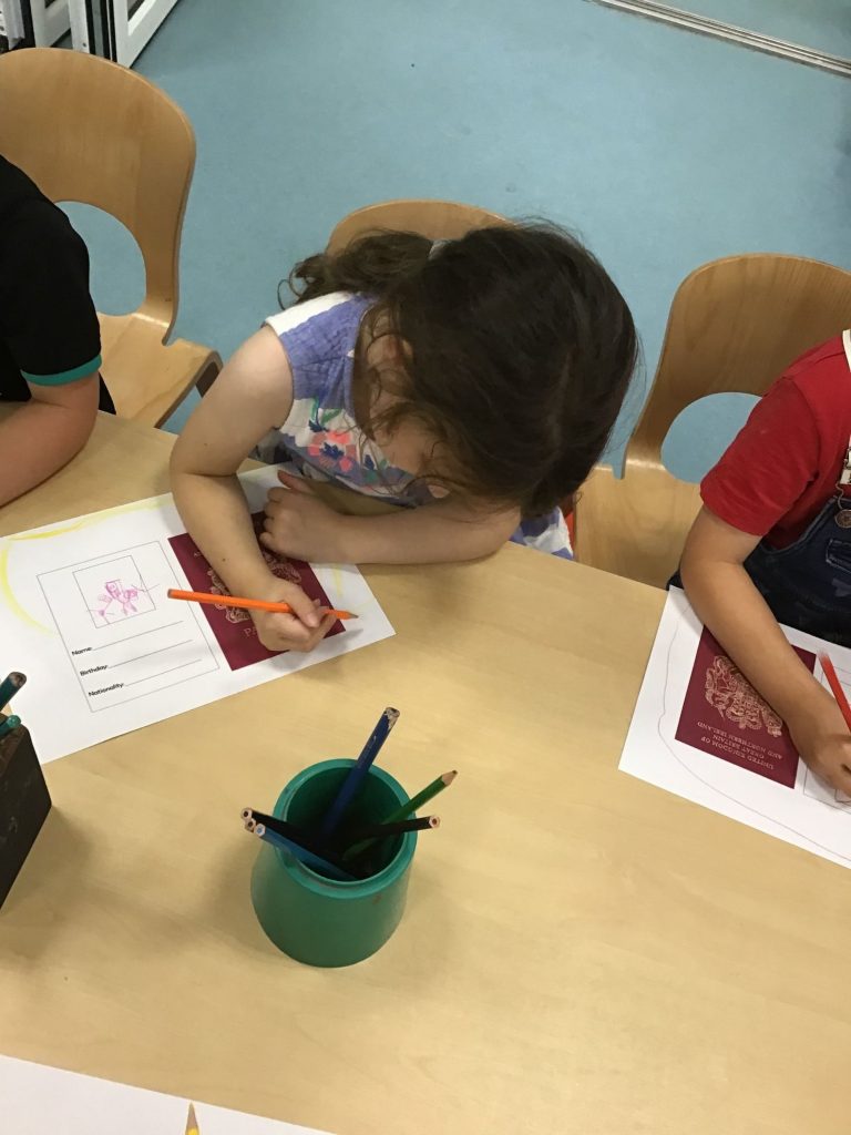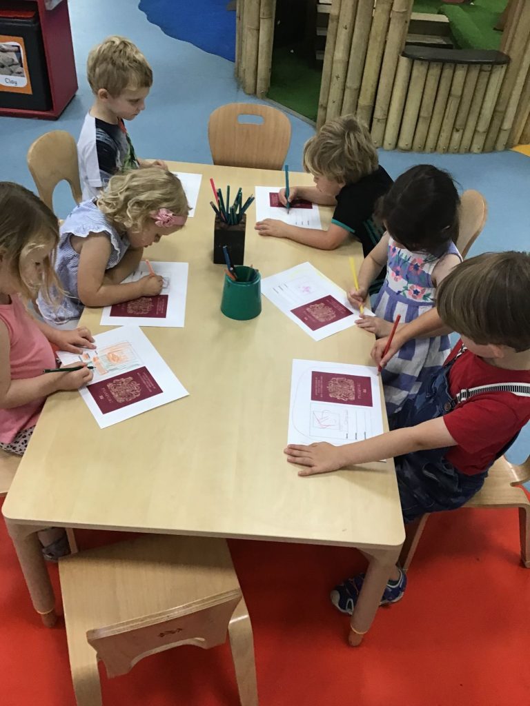 The children enjoyed taking bookings and choosing where they would like to go on holiday. Everyone made their own passports and drew self portraits for the photos.