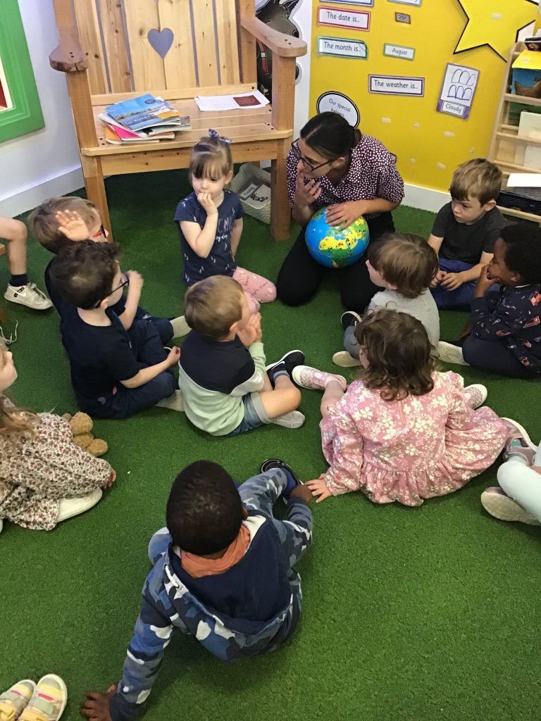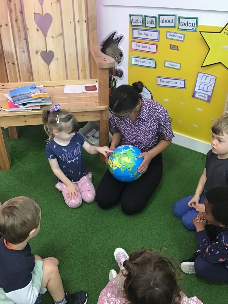 There was a discussion in the group where everyone would like to travel to and looked for these places on the nursery globe.