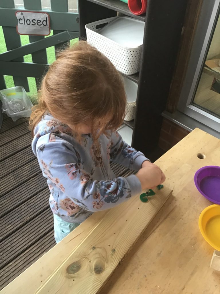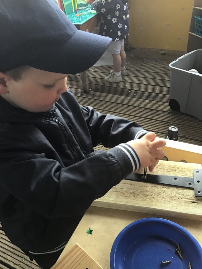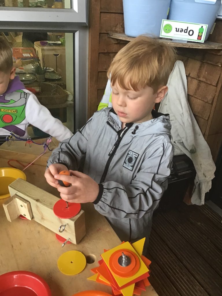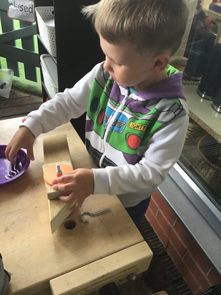 The children had the opportunity to develop their fine motor skills , twisting and screwing to create their very own design!