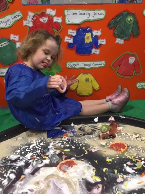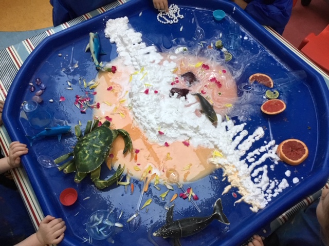 They have explored a coral reef using food colouring, shaving foam with flower petals and different zest fruits which tested all of their senses.