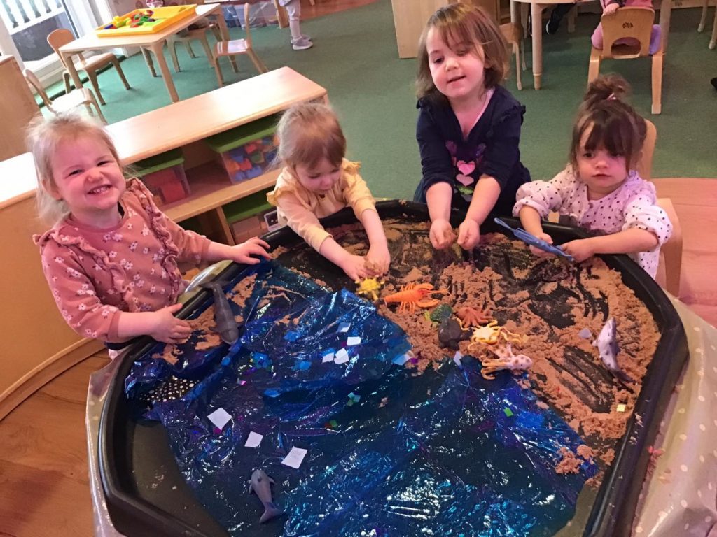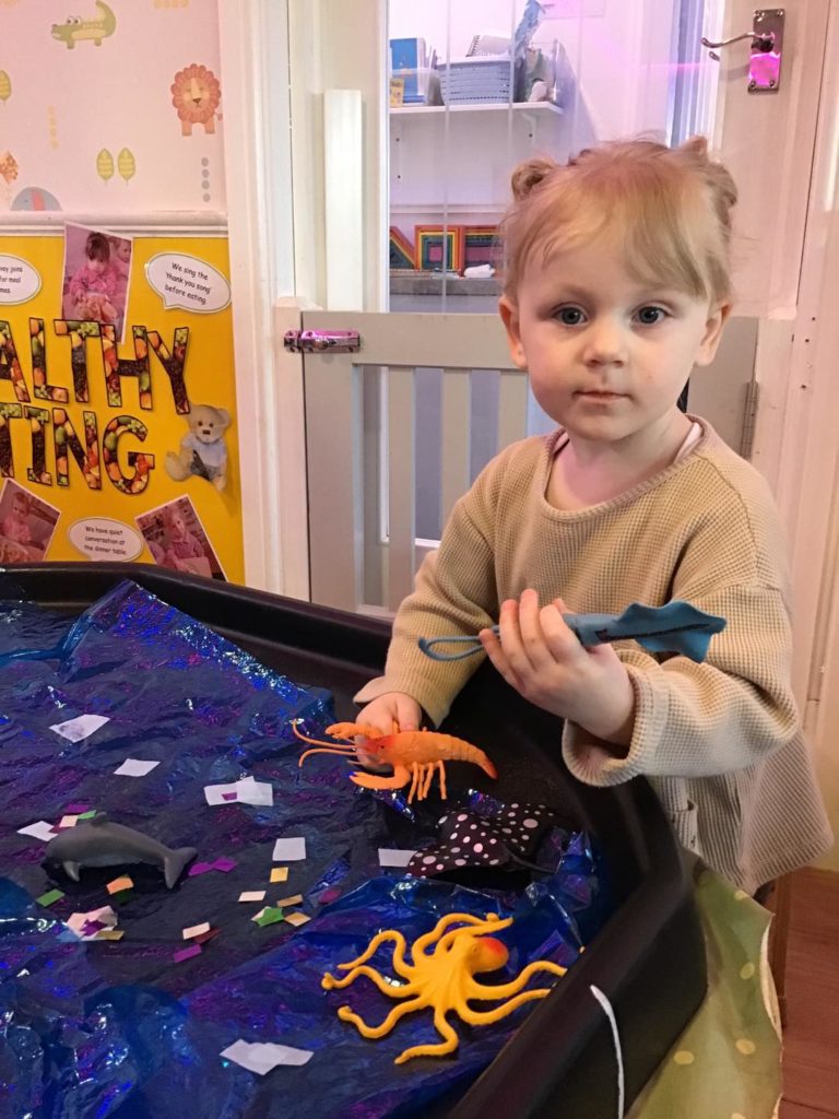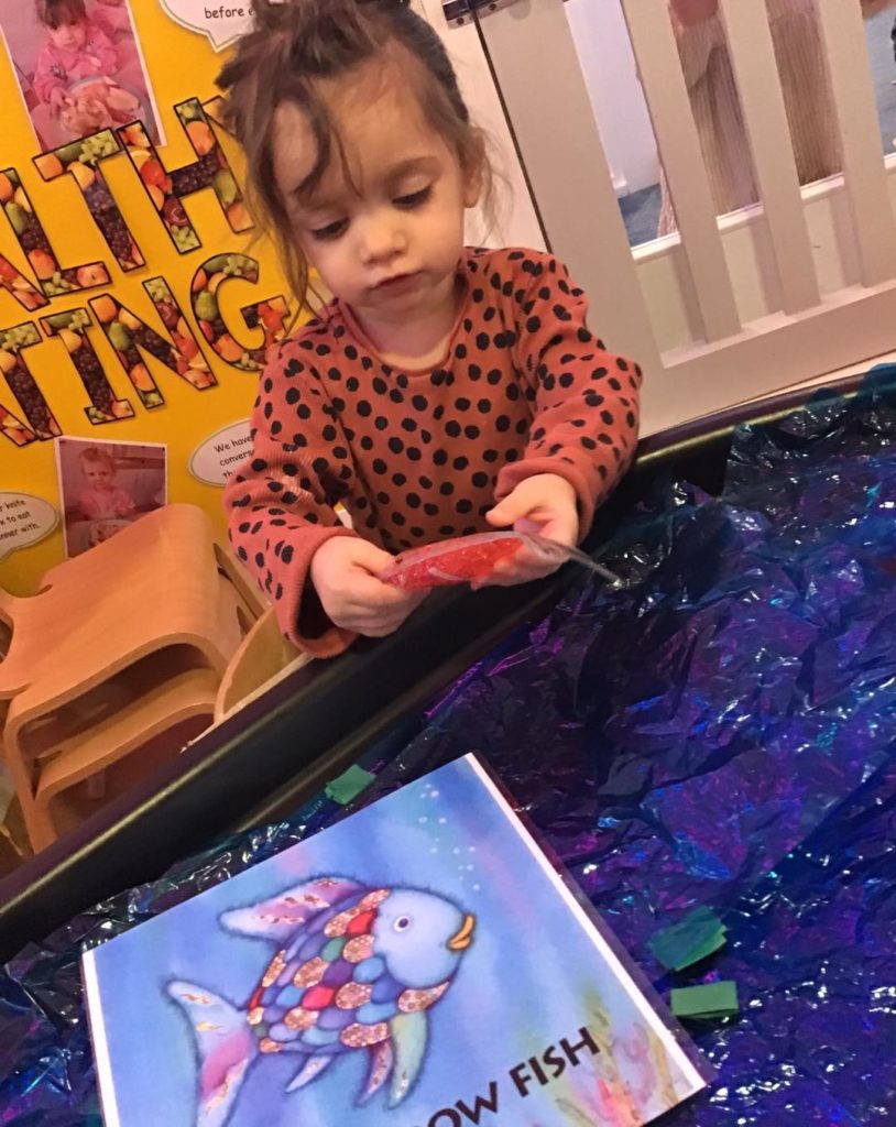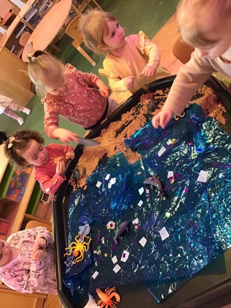 After listening to the story, the Peter Rabbits loved exploring our Rainbow Fish tuff tray! They enjoyed feeling the textures of the bubble fish and the sand. We spoke about all of the gorgeous colours in the book and the various sea creatures in our mini ocean.