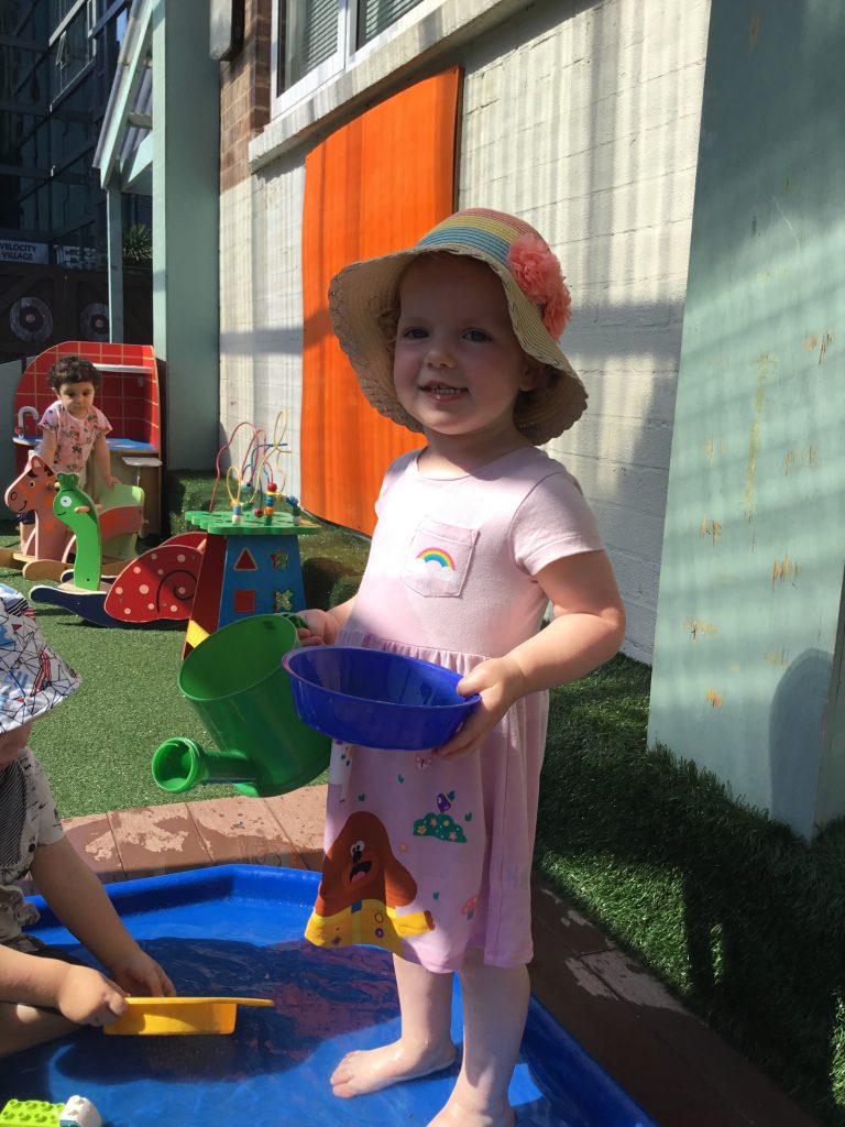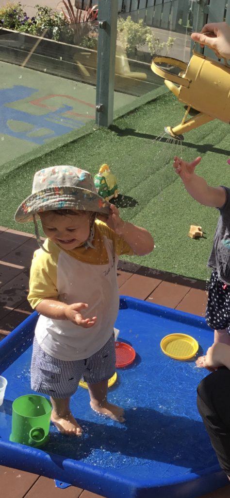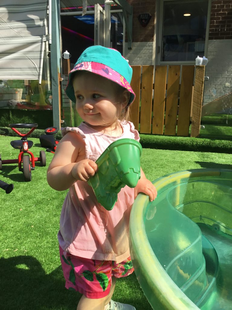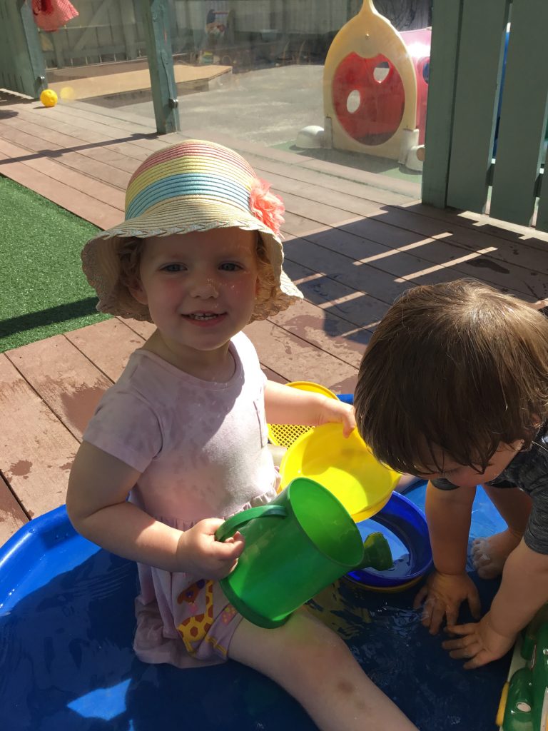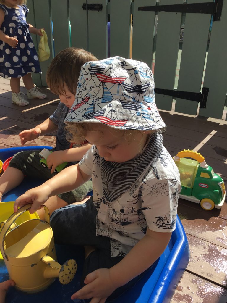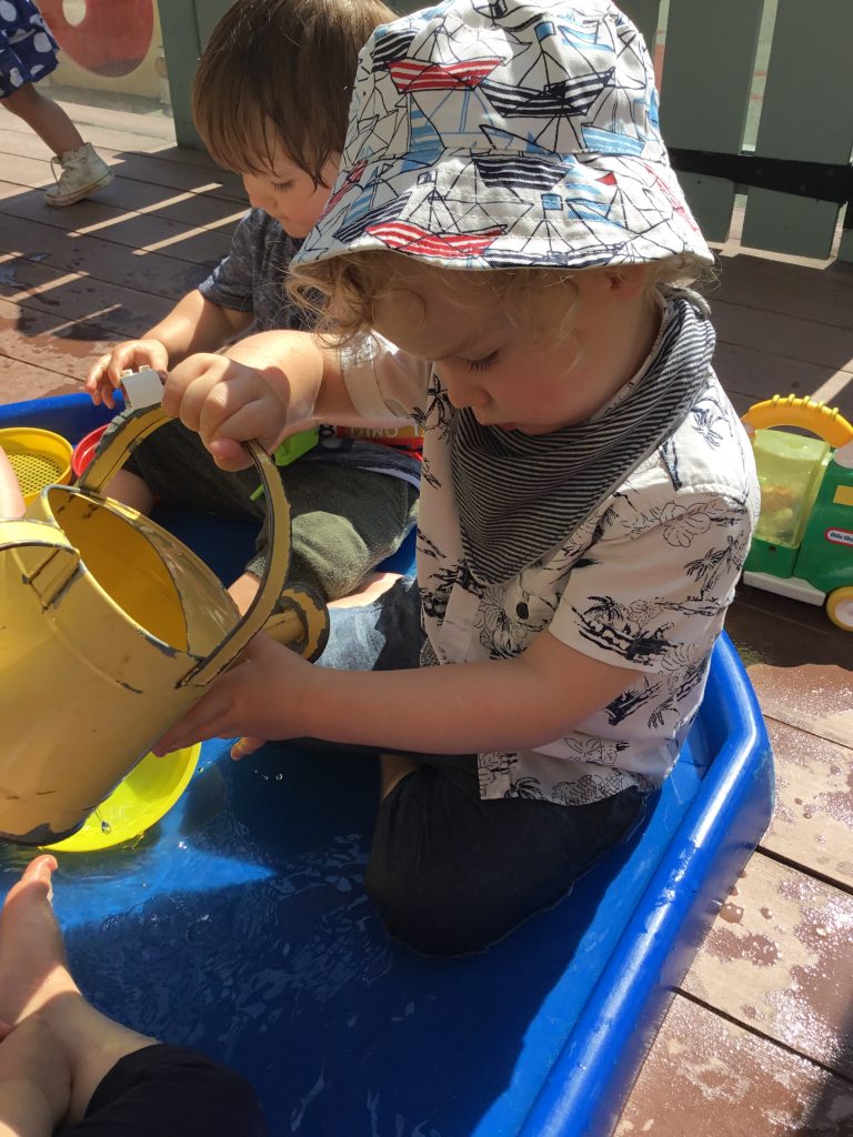 In the glorious weather we’ve had recently the under twos have been trying to keep cool by taking part in lots of water play. With cream and sun hats on, or playing in the shade, everyone was keen to dive into the water play.
