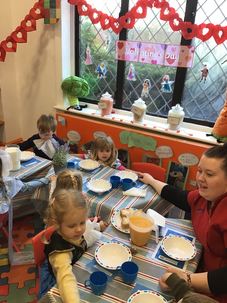 Our wonderful celebration of Valentine’s day got off to a great start when the children arrived dressed as princes, princesses, or fantasy characters. The children enjoyed admiring each other’s outfits and we chatted about the different characters.