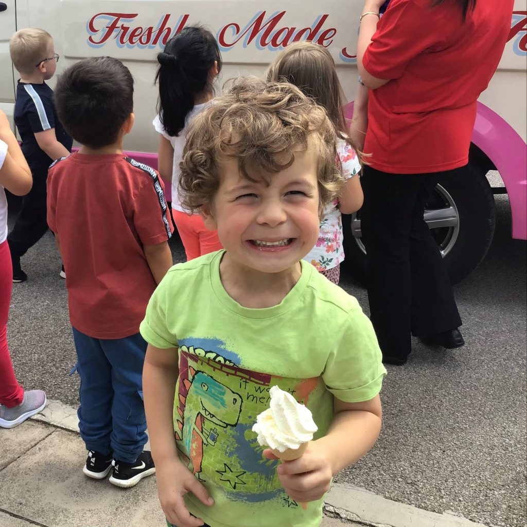 Due to the sunny weather, we have had some visits by the ice-cream van to our nurseries!