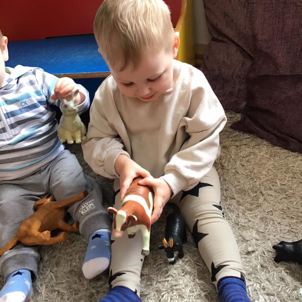 Our Jemima and Bobtail children have been showing interest in animal sounds. So, this month we are focusing on a delightful story called ‘Wake-Up Time on Bumble Farm.’ This tells the tale of Lazy Rooster who is sleeping late. Without his cock-a-doodle-doo, Farmer Faye is still in bed and the animals on Bumble Farm are causing chaos!