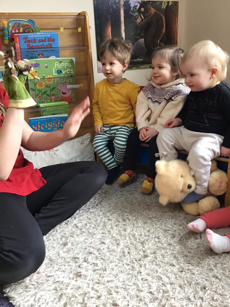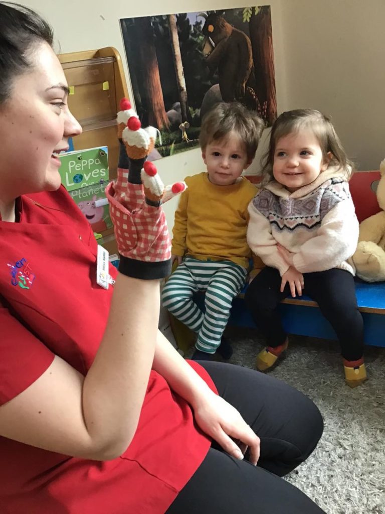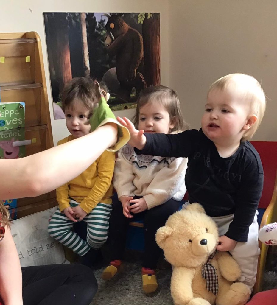 During our circle time session, the children have been looking at puppets which connect to the story to encourage their language and sound making. As the images show, the Bobtails’ children showed excitement and really engaged as Miss Katie sang and read the story.