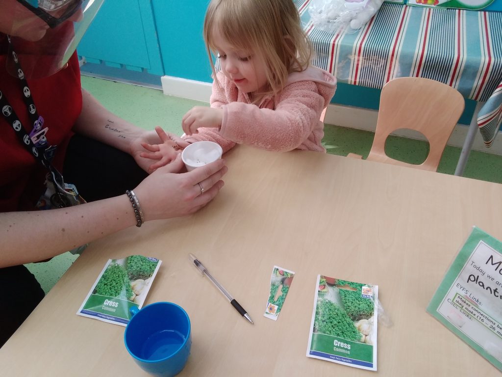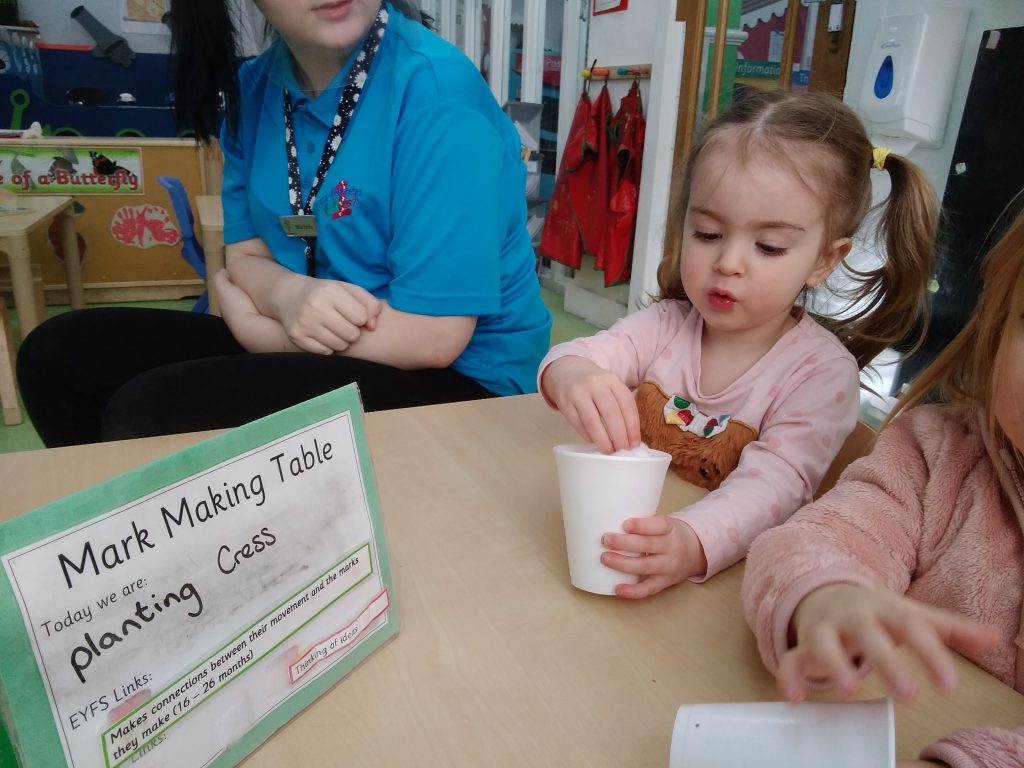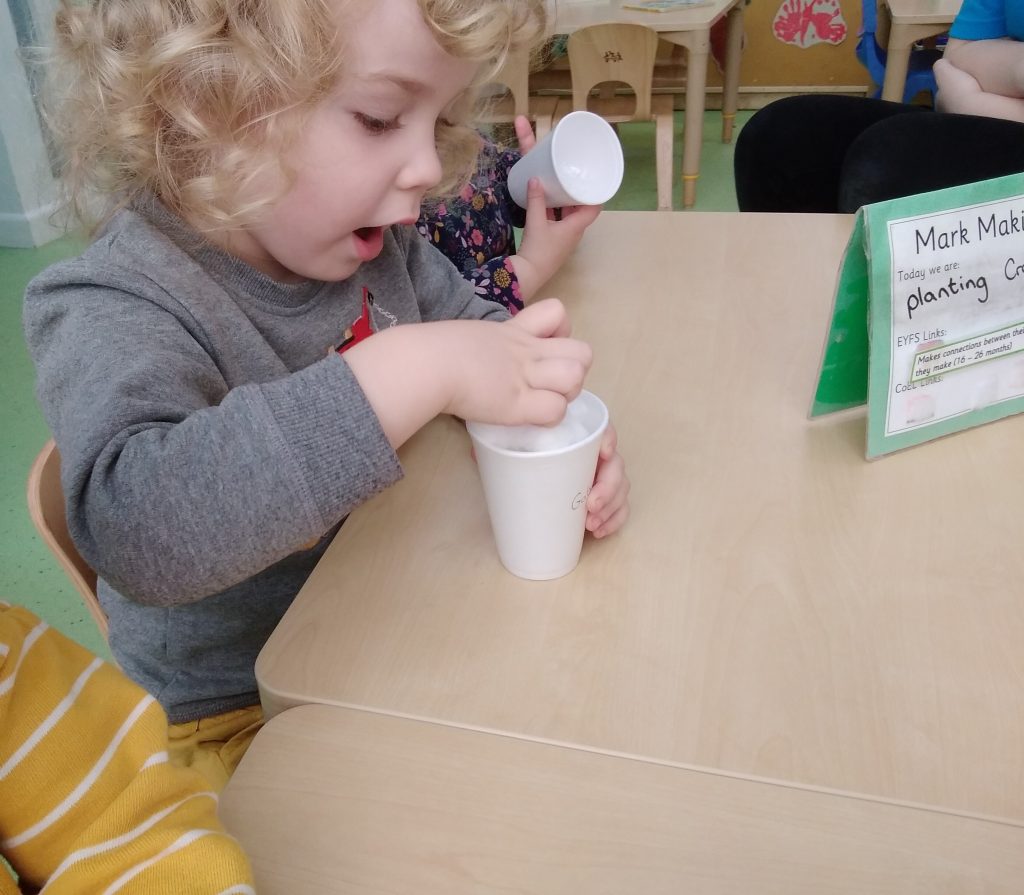 The children always love exploring nature. With Spring in the air, they have been busy planting cress seeds and are enjoying watching watering them when they arrive at nursery and checking to see how they are growing.
