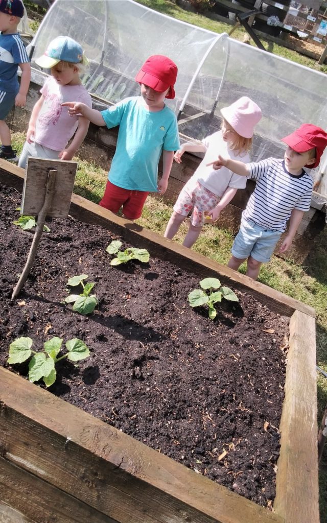 When all the watering was over, we discussed how we would like to come and help pick the fruit and vegetables and it would be a good idea to have these for our snack times at nursery.