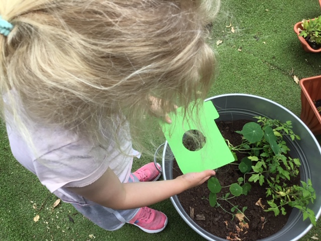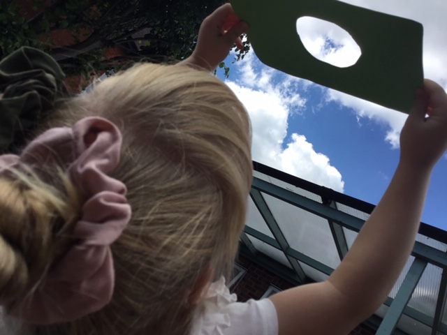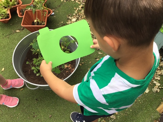 Back outside, the children looked up to the sky to see the shapes of the clouds as they passed over. A walk around the garden gave the children the opportunity to talk about all the plants that are growing. They used brilliant describing words for the plants. Well done everyone!