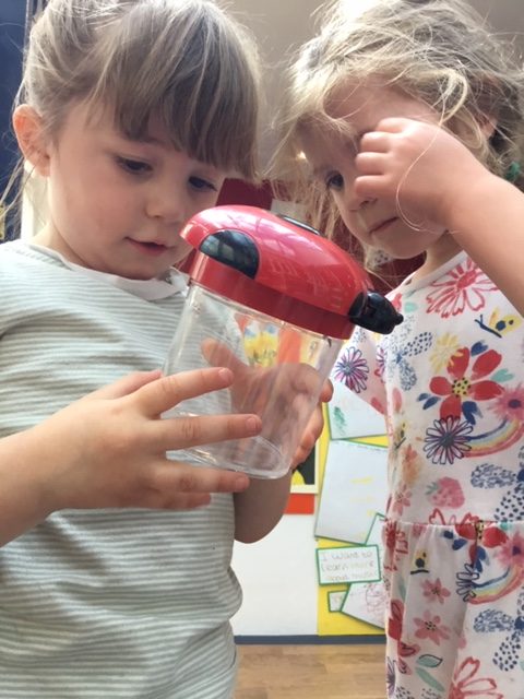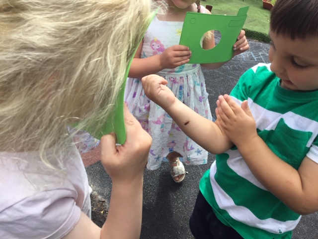 They took their makeshift cameras outside to help focus on their exploration and were delighted to find different types of insects, including a woodlouse which was brought inside for closer observation through the magnifying glass.