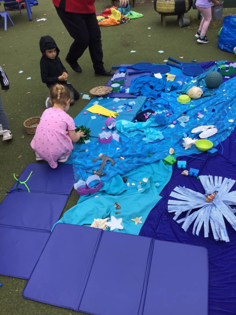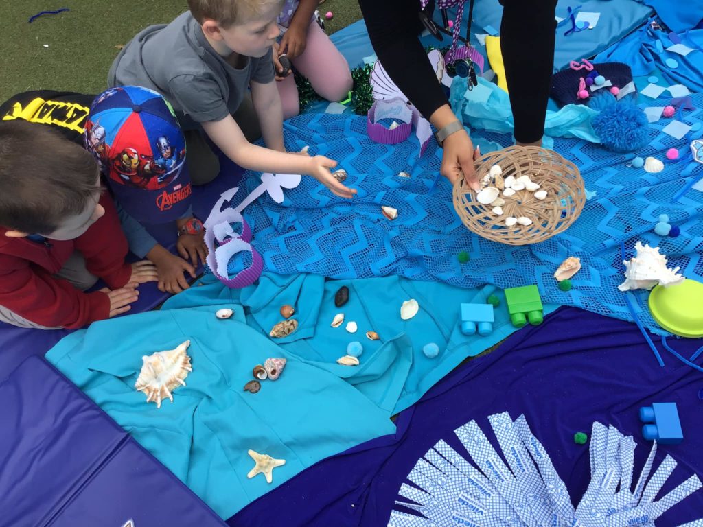 The younger children explored different sensory activities with colours and sea creatures to look at.