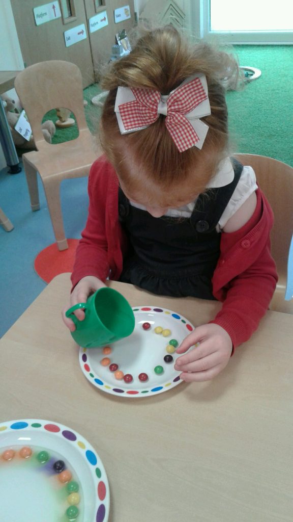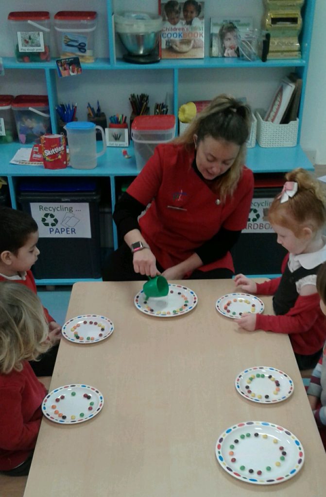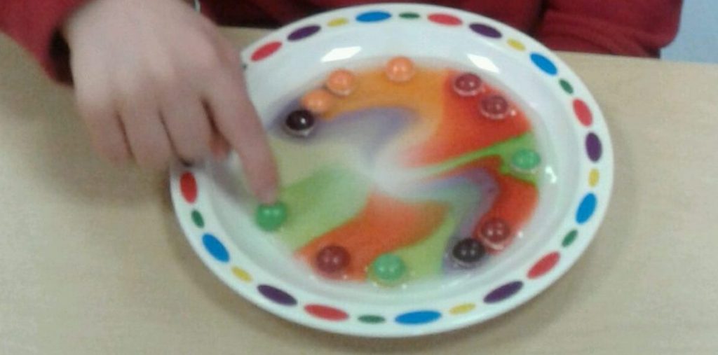 The ‘Skittles’ experiment was a firm favourite. After carefully arranging the Skittles in a circle on a plate and adding warm water to the centre, the children sat back and watched the magic happen. The coloured sugar coating slowly dissolved and spread through the water to make an amazing Skittles rainbow. What a WOW moment!
