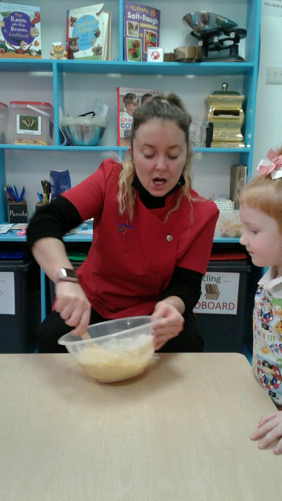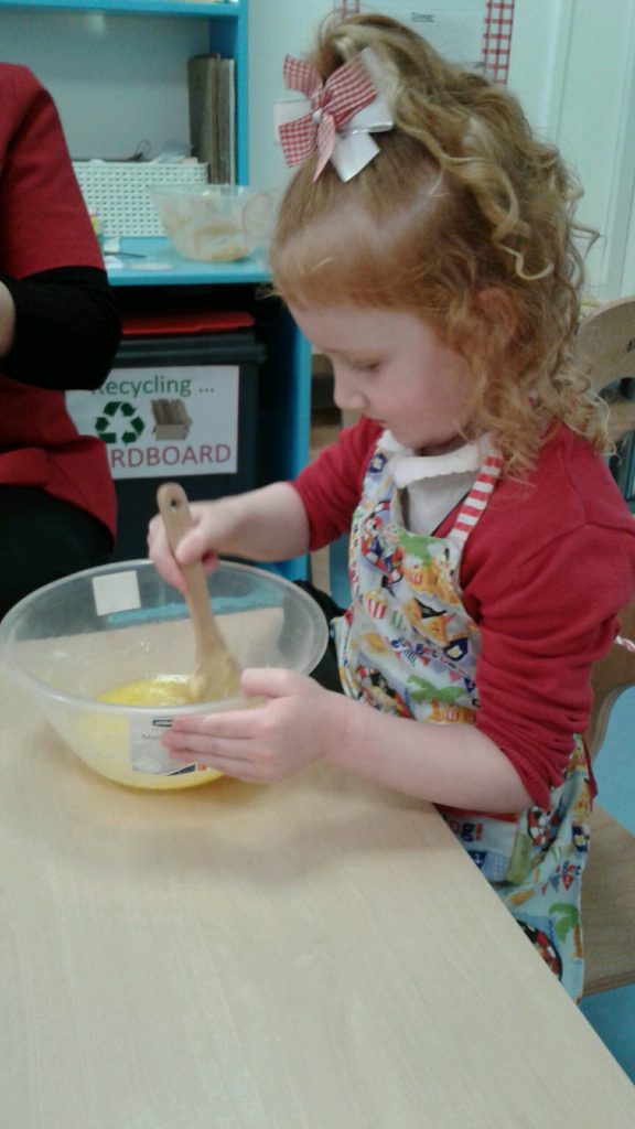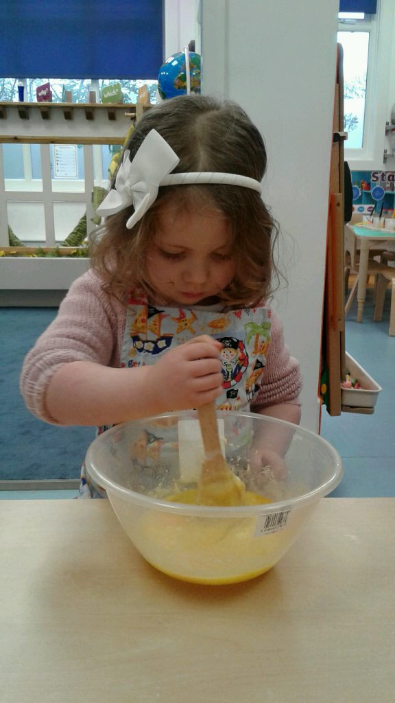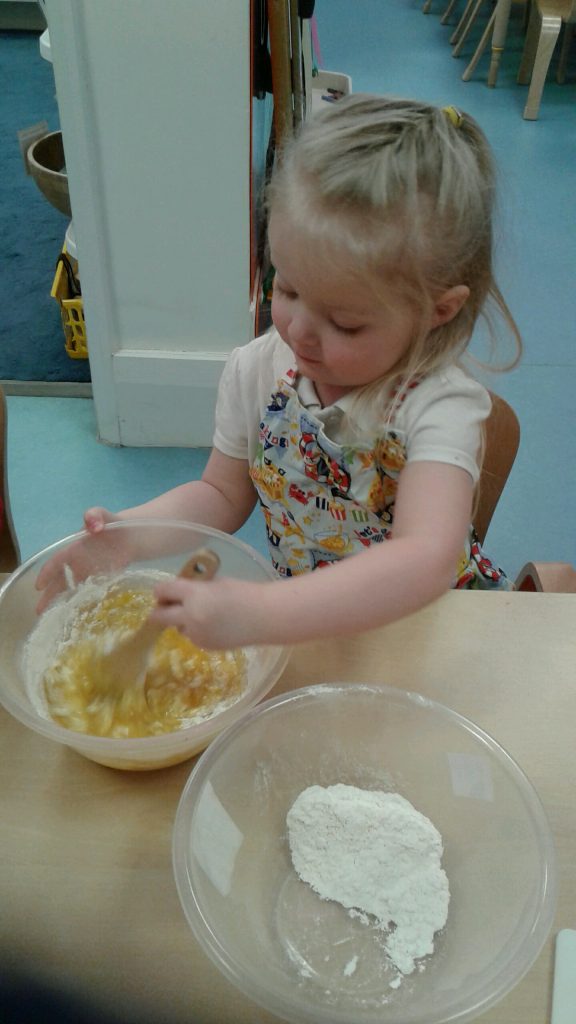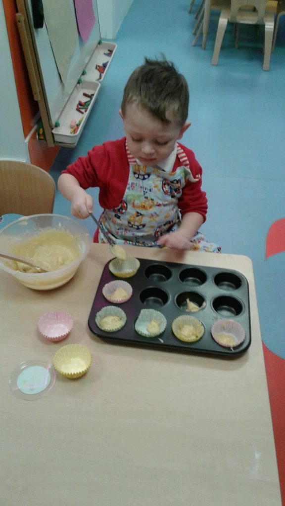 Less of a spectacle, but still very enjoyable, our next activity was another favourite as the children decided to bake some cakes for their snack. Here the children could experience first hand the changes that happen when ingredients are combined and then baked. The results were delicious and a big WOW with everyone!