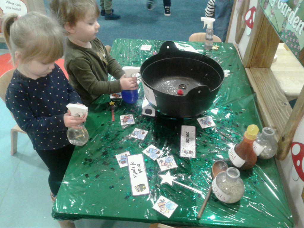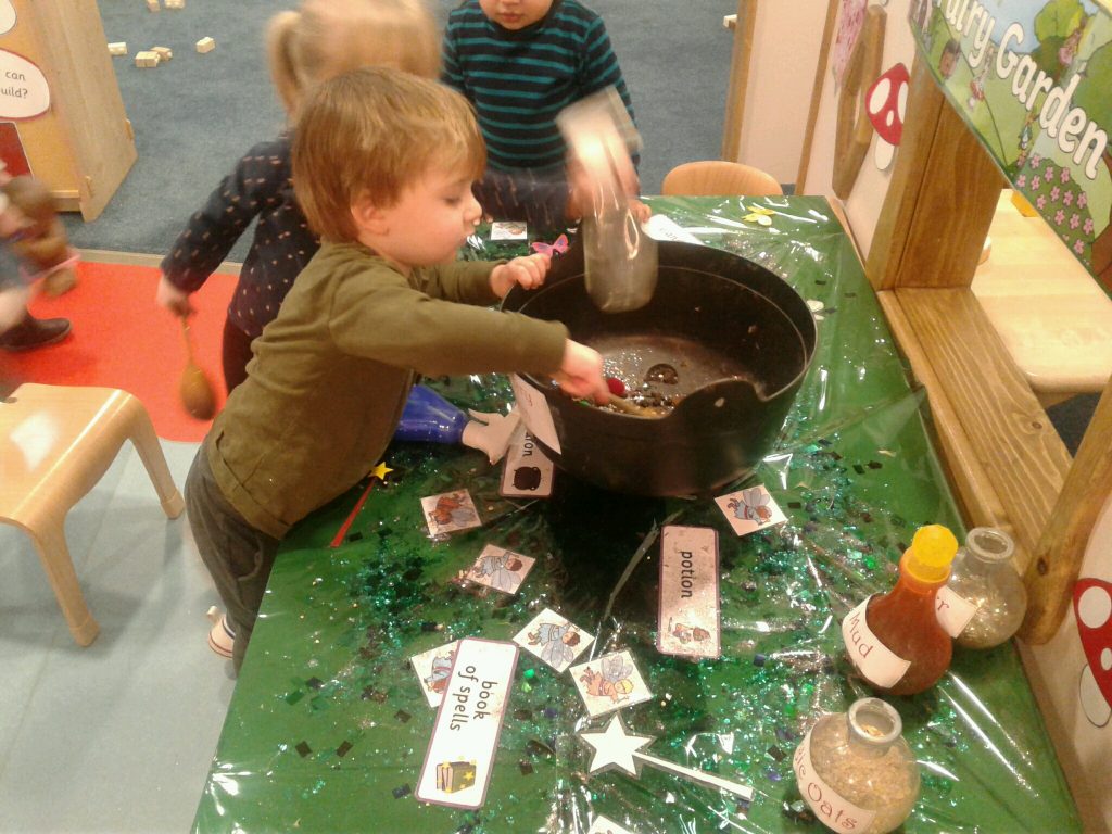 These have linked in with our themes such as fantasy where the children had lots of fun making fairy potions and working together using a variety of different resources and ideas. The ‘Dear Zoo’ tuff spot captured their imaginations and provided endless opportunities for the children to explore the story still further.